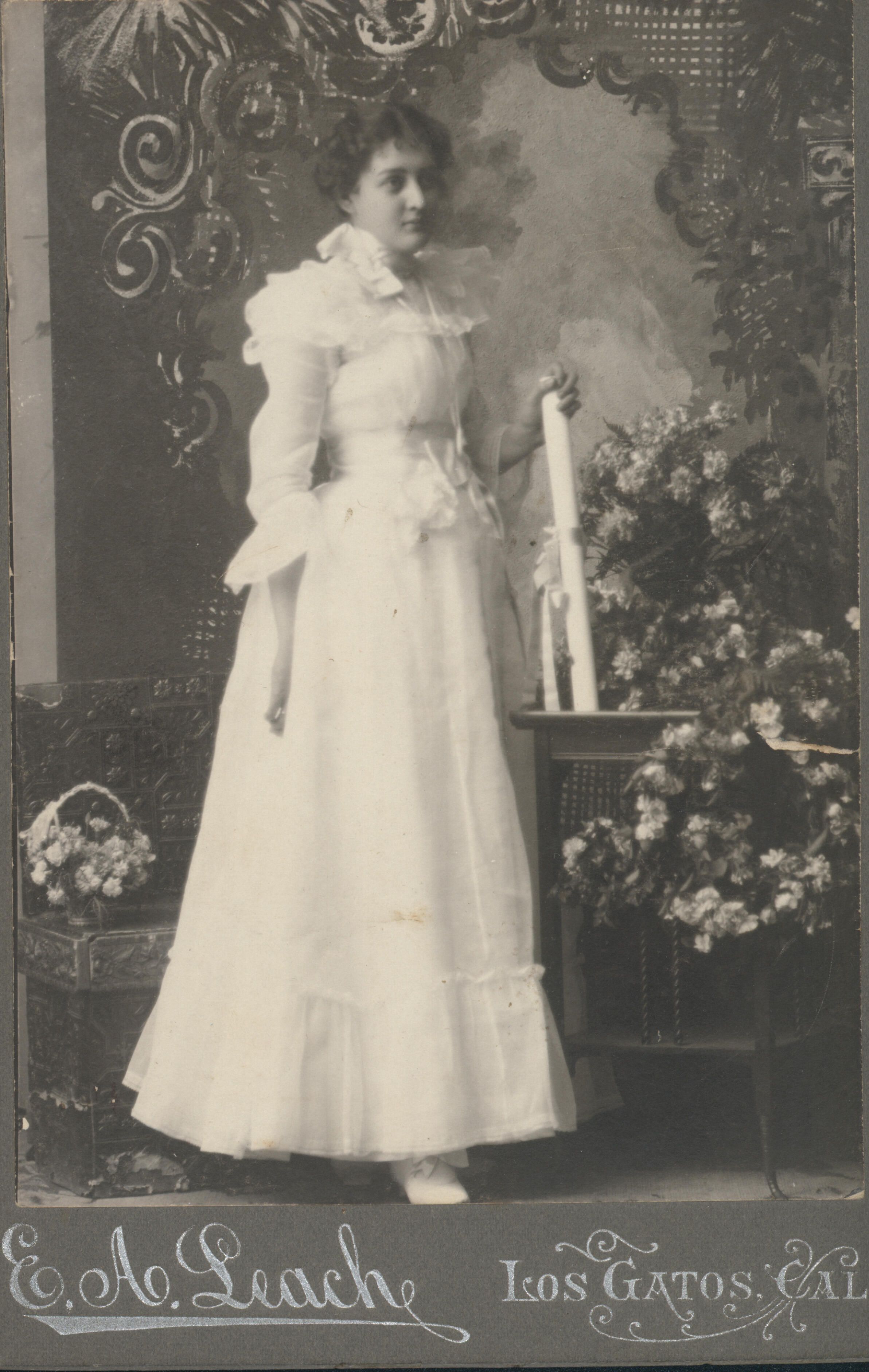 Frances L. Fitch, Los Gatos High School graduation picture. Very little information is known about this woman but apparently she was born in Ohio in July, 1878. In the early part of the 20th century she was a nurse in San Francisco at the Hospital for Children & Training School. PE047Collection