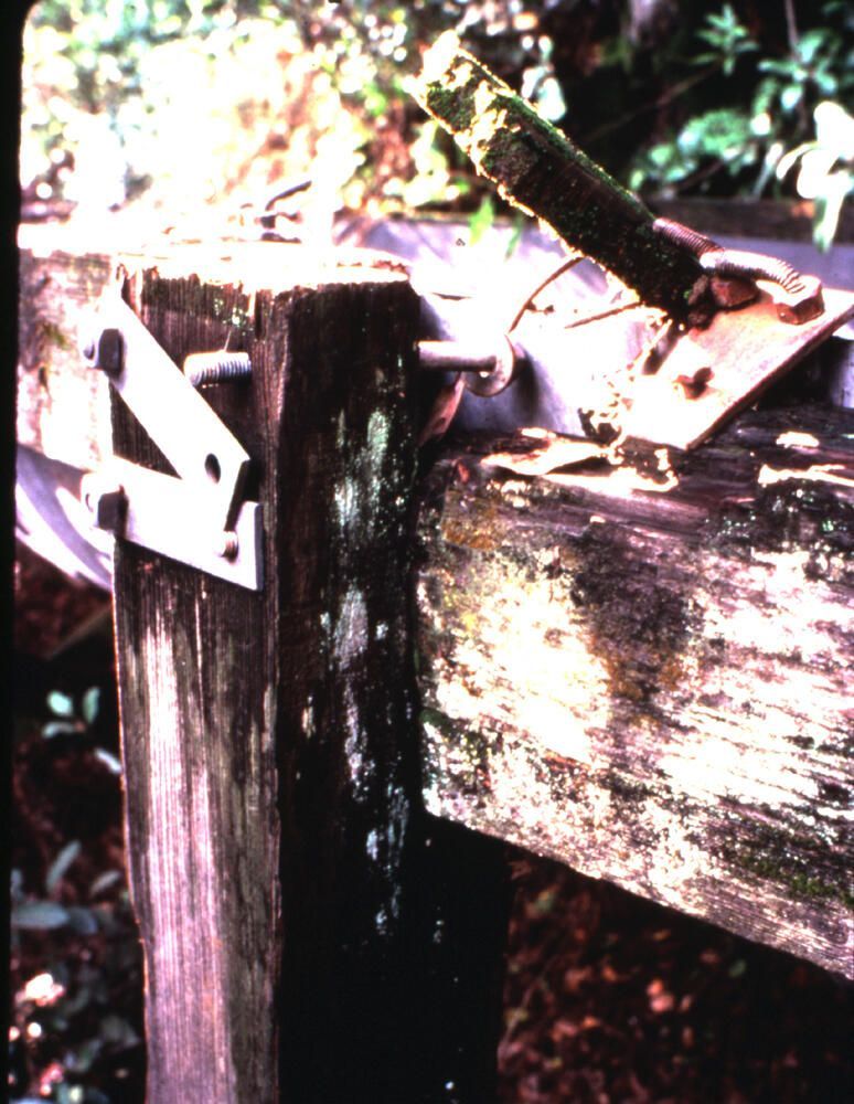 In 1871, San Jose Water Company built a wooden flume along the east bank of Cats' Canyon in order to pick up water at Jones Dam above Alma and bring it to Los Gatos. Reconstructed in 1880, the flume provided a romantic walkway for lovers, although this practice was somewhat dangerous and was discouraged by Water Company officials. Encounters with wild cats and skunks were not infrequent. The three-mile long wooden flume was replaced by a galvanized steel aqueduct in 1935. BAK016Collection