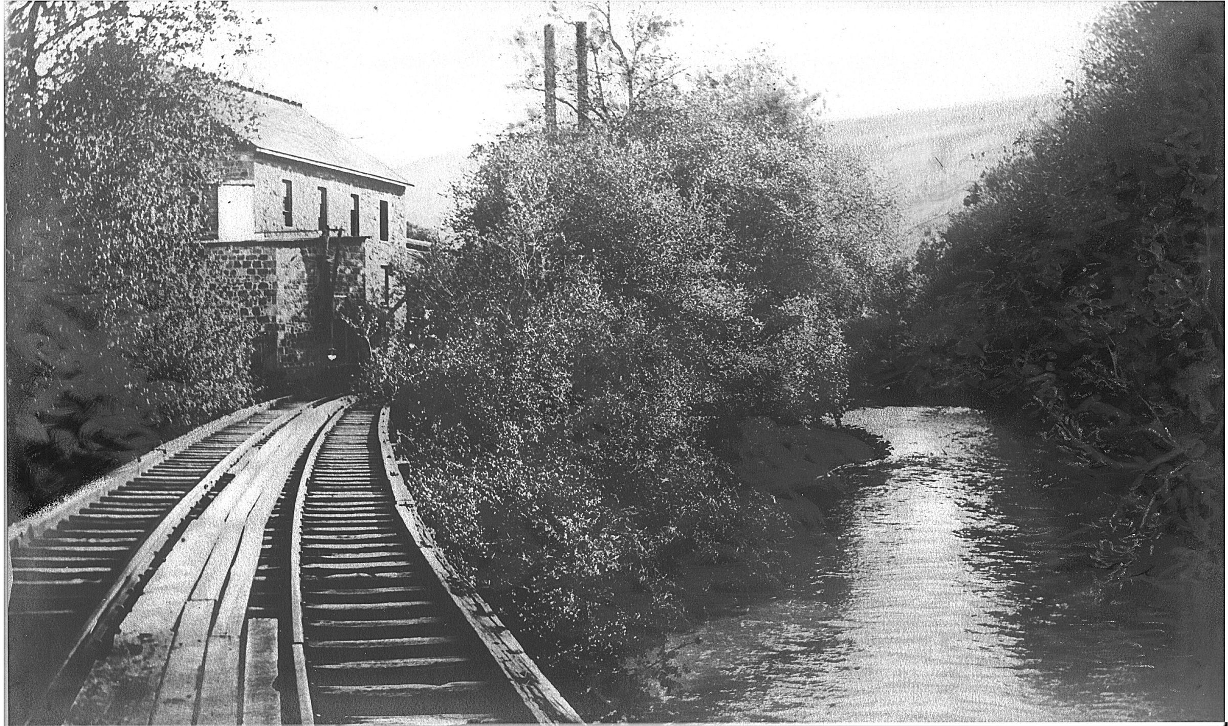 After the arrival of the narrow gauge railroad in Los Gatos in 1878, a spur line, pictured here, was run to the mill. In 1870, the Mill was incorporated under the name "Los Gatos Manufacturing Company." Stockholders included W. S. McMurtry, who supervised operations, John Young McMillan, W.H. Rector, C.C. Hayward, and W.H. Rogers. In 1881, the newly founded Los Gatos Weekly News reported the mill was running day and night, had a capacity for 200 barrels per day, and could grind 25 tons of grain in 24 hours. FB006Collection
