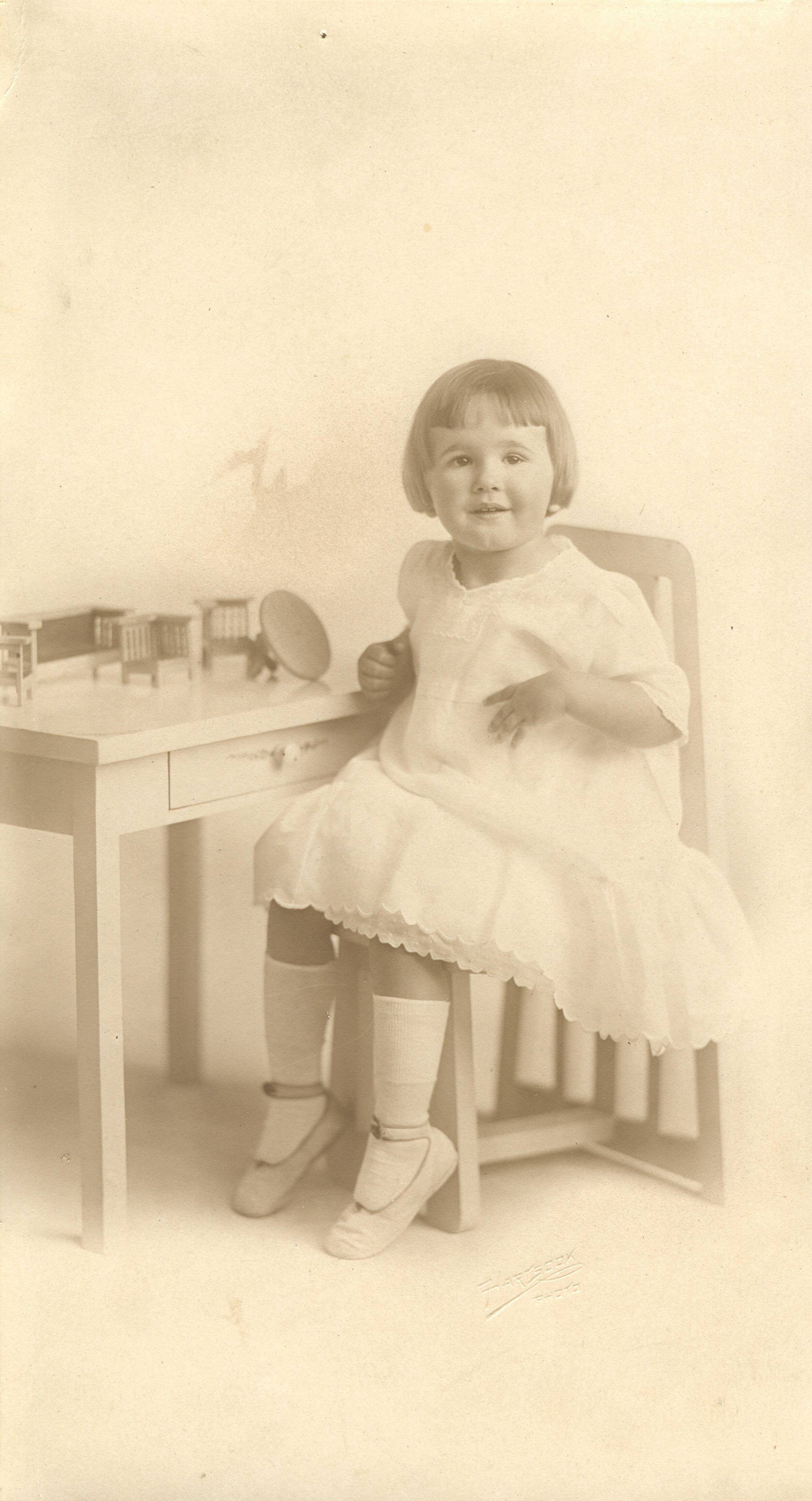 Girl with bangs seated at dressing table. Name unknown. Probably a Franks relative. FRA051Collection