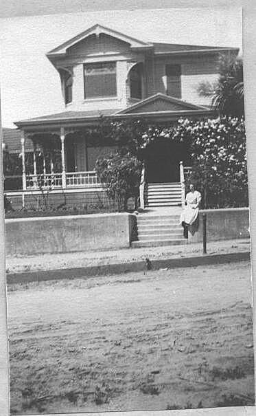 Ruth Bell Turner on the wall in front of 33 Glen Ridge Avenue, built ca. 1909. JLG006Collection