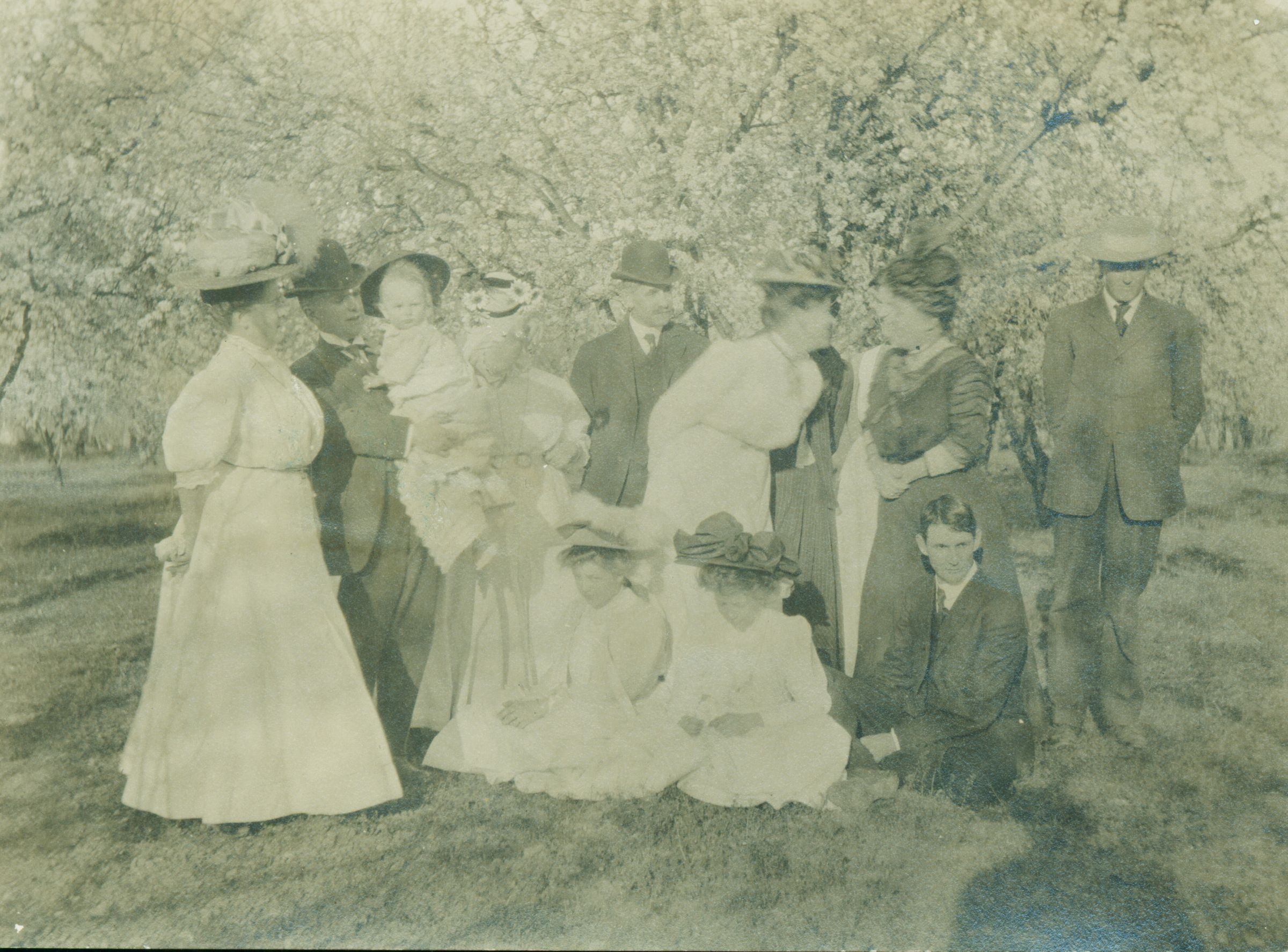 This photograph shows a gathering of Farwell family (and perhaps friends), probably at Glen Una Ranch. Unfortunately the people are not identified. FAR066Collection
