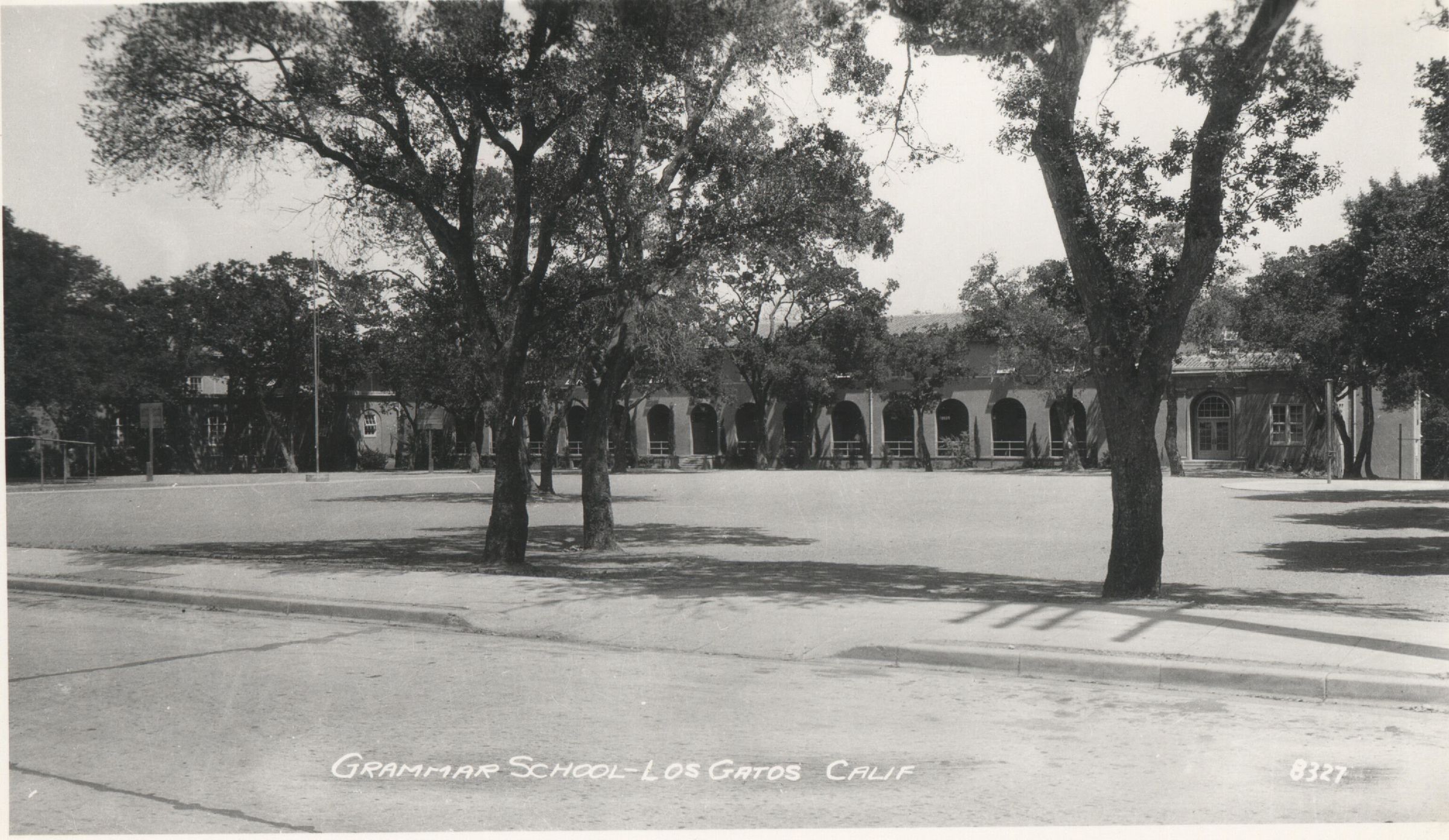 This unusual view of the 1923 Grammar School on University Avenue illustrates how the architectural style was influenced by Mission San Juan Capistrano. ROS050Subject