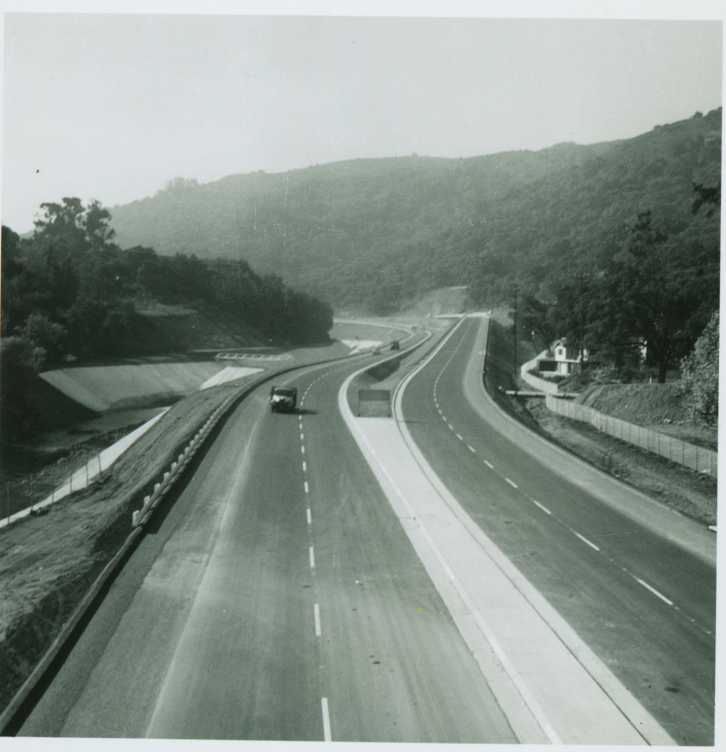 This photo shows the newly completed Highway 17, ca. 1957, heading south to Santa Cruz. FAR047Collection