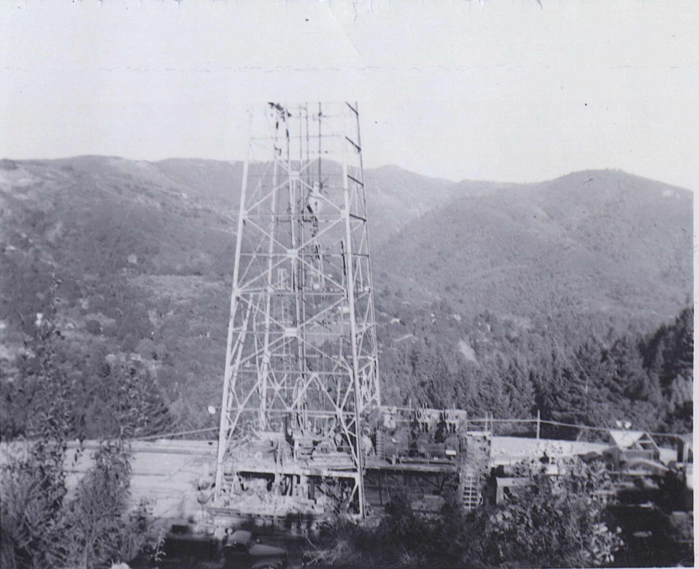 Experimental oil well drilled by Union Oil Company in Holy City. The view is looking east toward Hooker Gulch and Aldercroft Heights. FRA001Collection