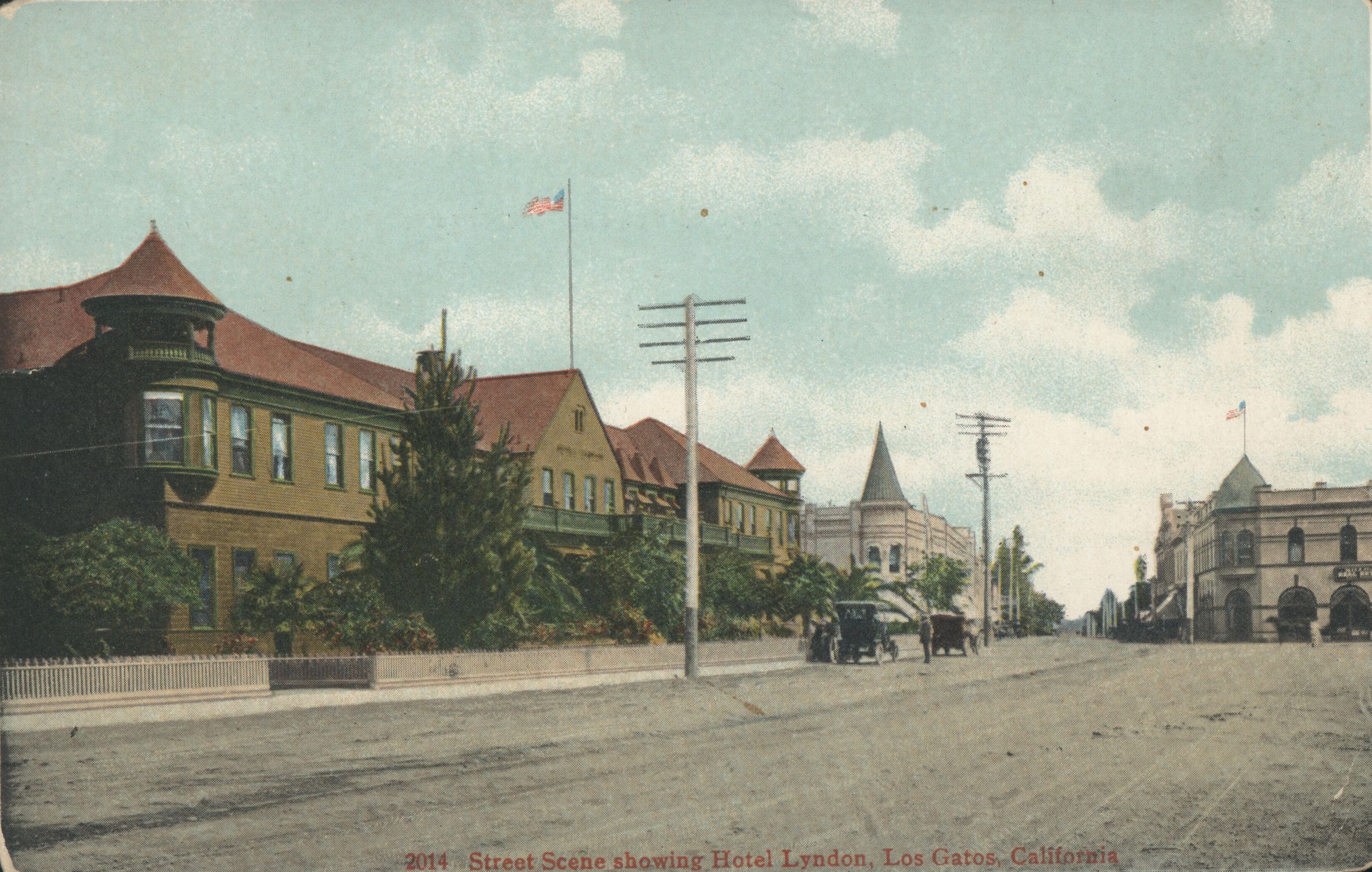 Postcard entitled, "Street Scene showing Hotel Lyndon, Los Gatos, California." MAC017Subject