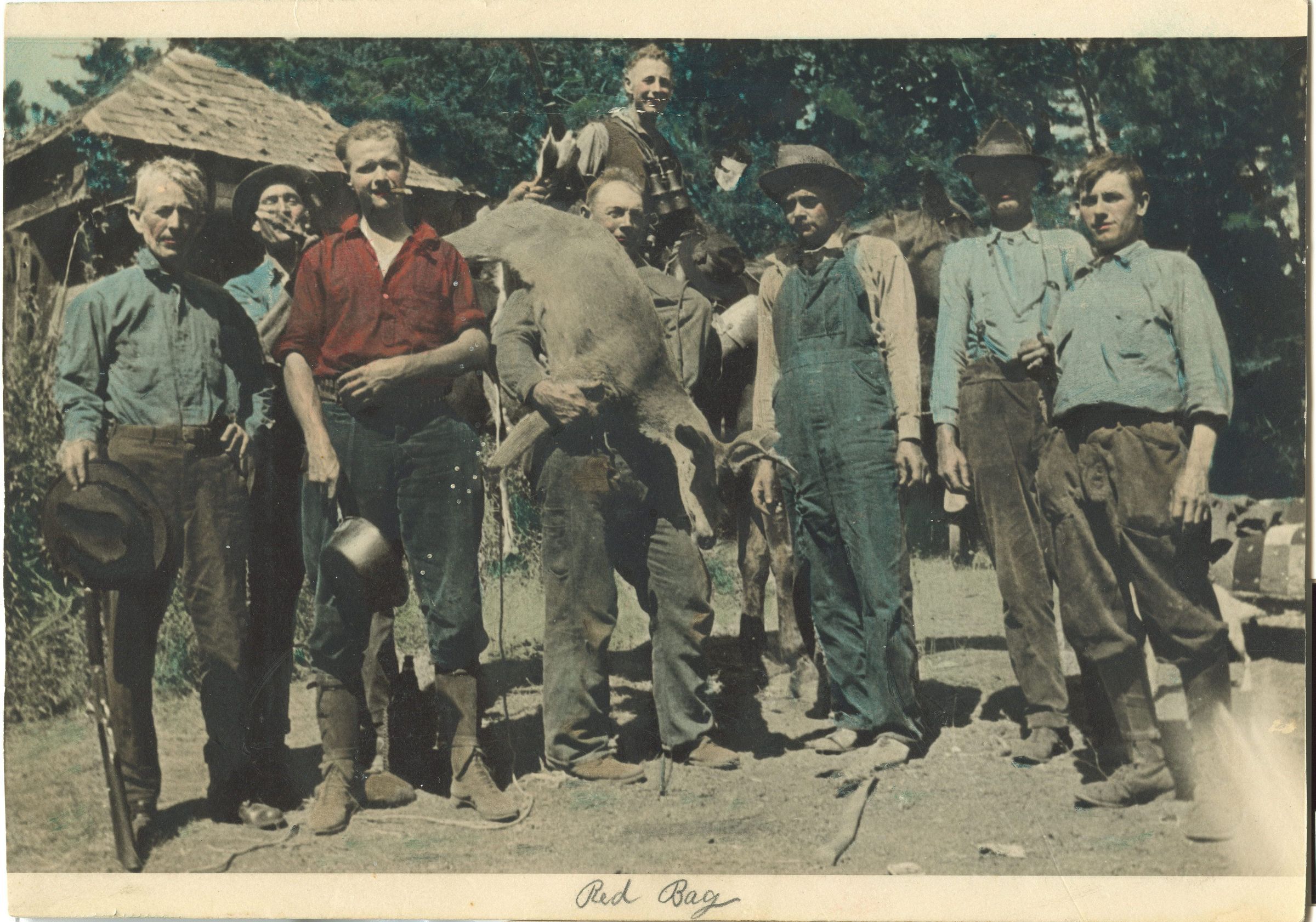 Left to right: Dick Blake, Norman Boughton in red shirt, and Mel Shore holding deer. MS014Collection