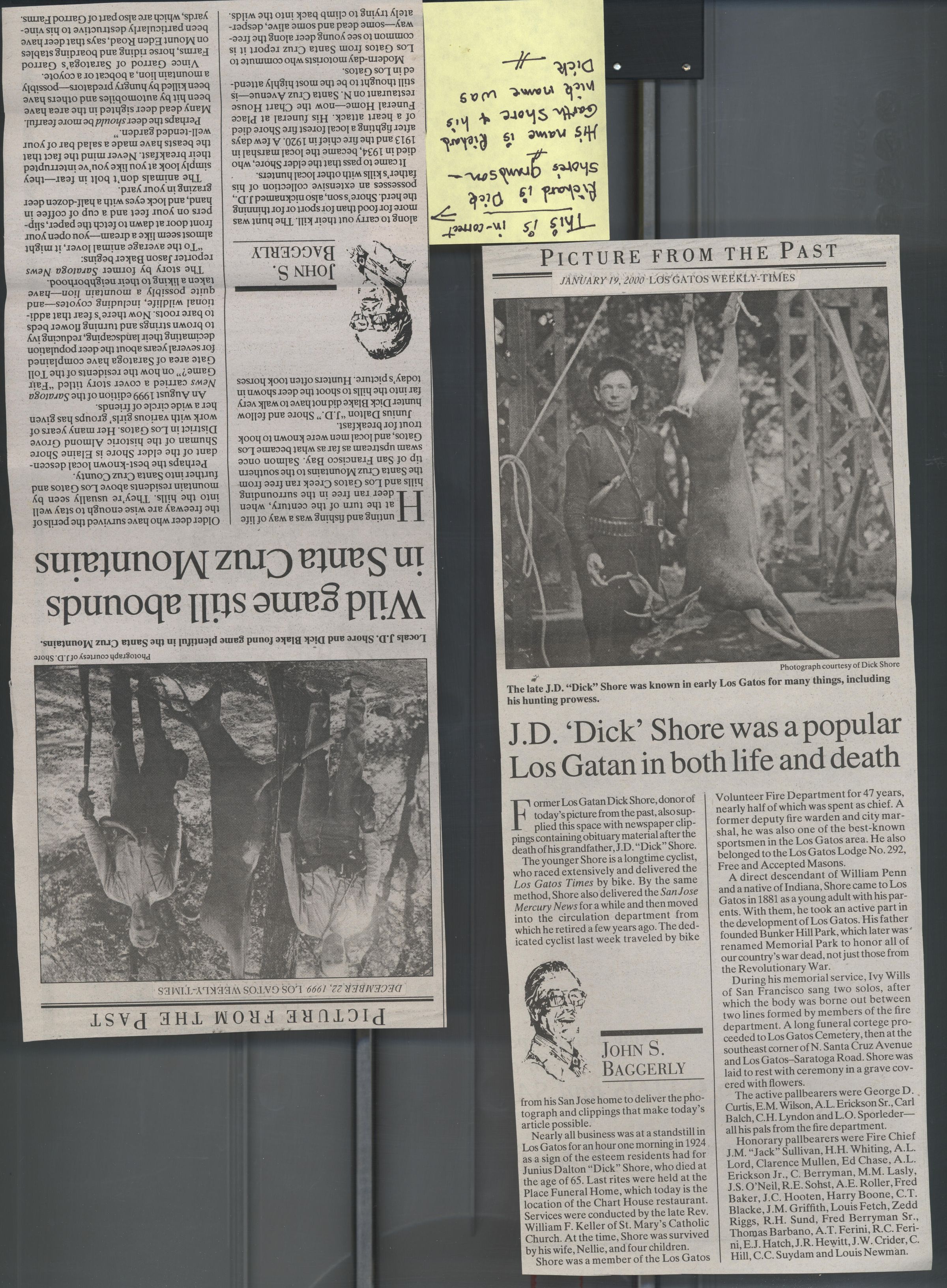 Los Gatos Weekly-Times reporter John Baggerly wrote this article about J. D. Shore, which appeared in the January 19, 2000 edition of the newspaper. SHU035bCollection