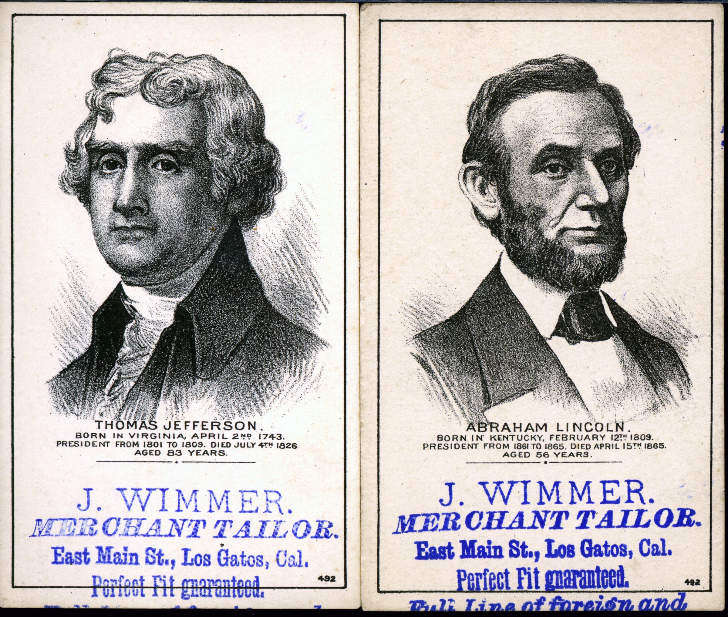 Advertising material from J. Wimmer, Merchant Tailor on East Main Street. ROS023Collection