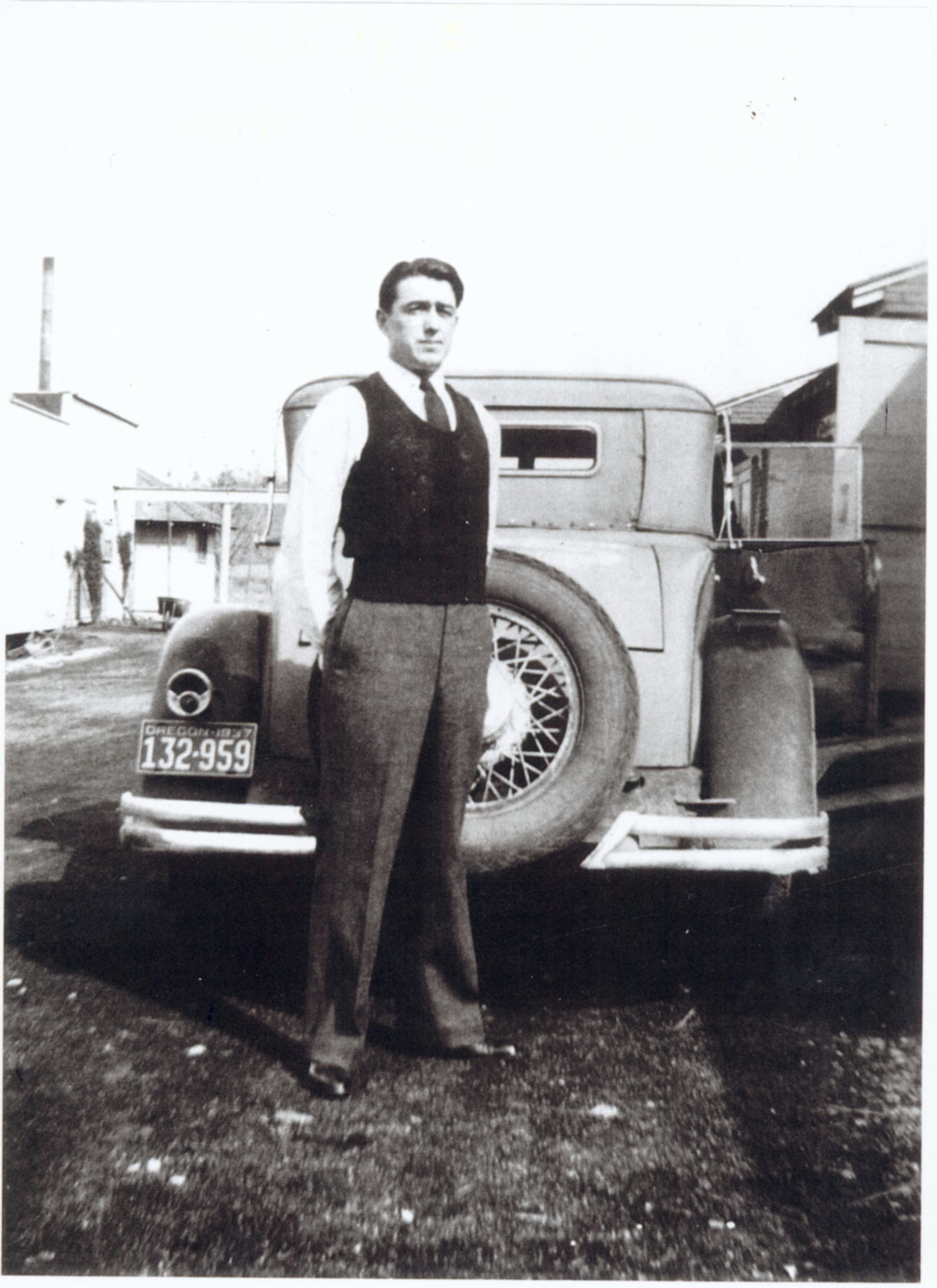 This car is a 1936 Nash, with a 1937 Oregon license plate. The photograph was taken in Oregon, where Joe Jr. was running a prune plant. DOE003Collection