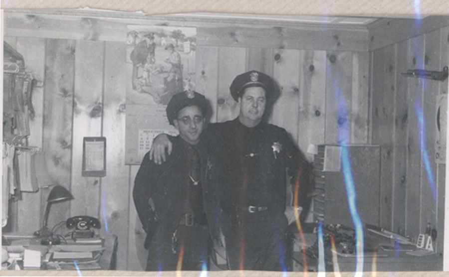 Auxiliary police officer John Silva (left) and Los Gatos Police officer Walter Phillips stand side-by-side. LAW014 .Collection