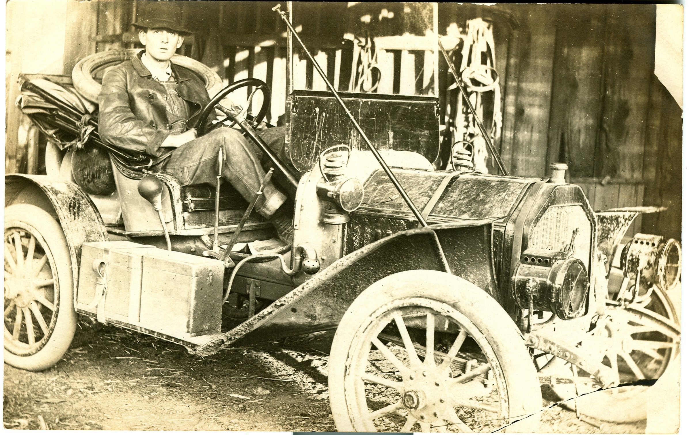 Joseph Scott driving a 1908 Buick at Scott Ranch. FIN033Collection