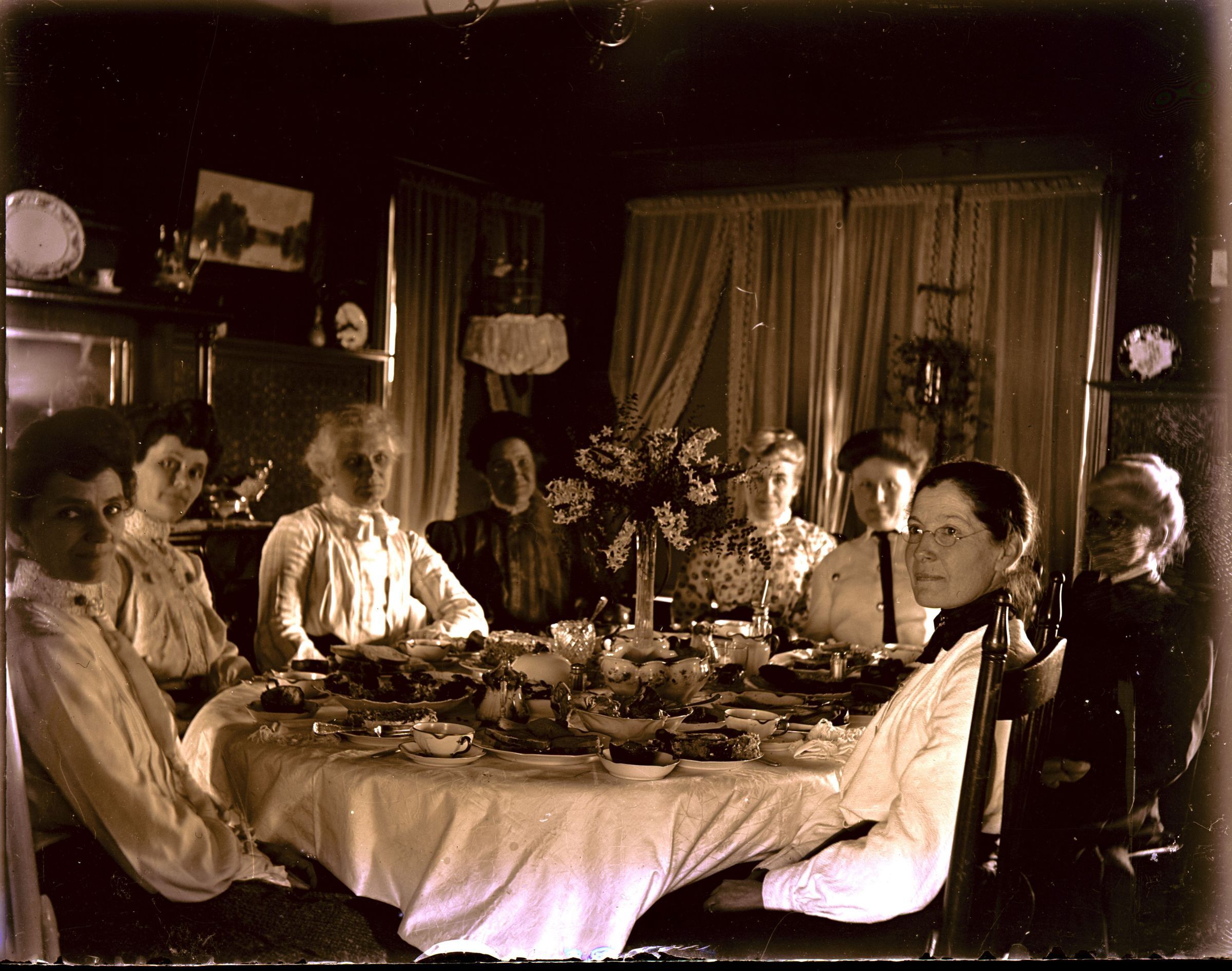 Eight ladies at tea. These appear to be the same ladies as in previous "parlor" photograph. MUS001Collection