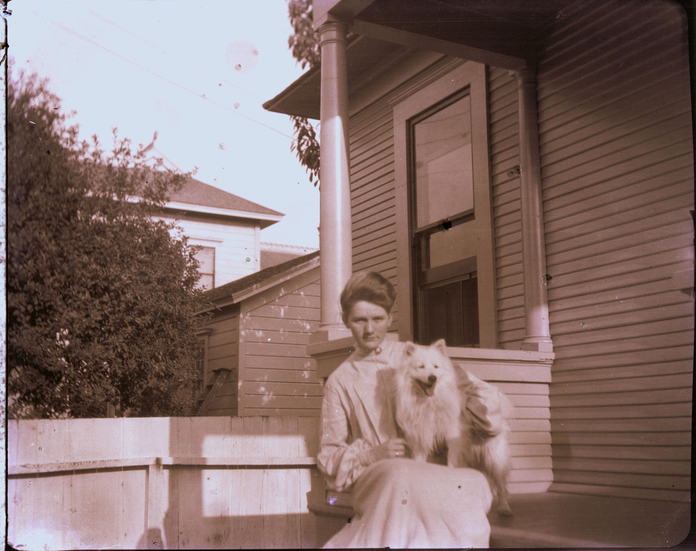 Lady with dog on porch
