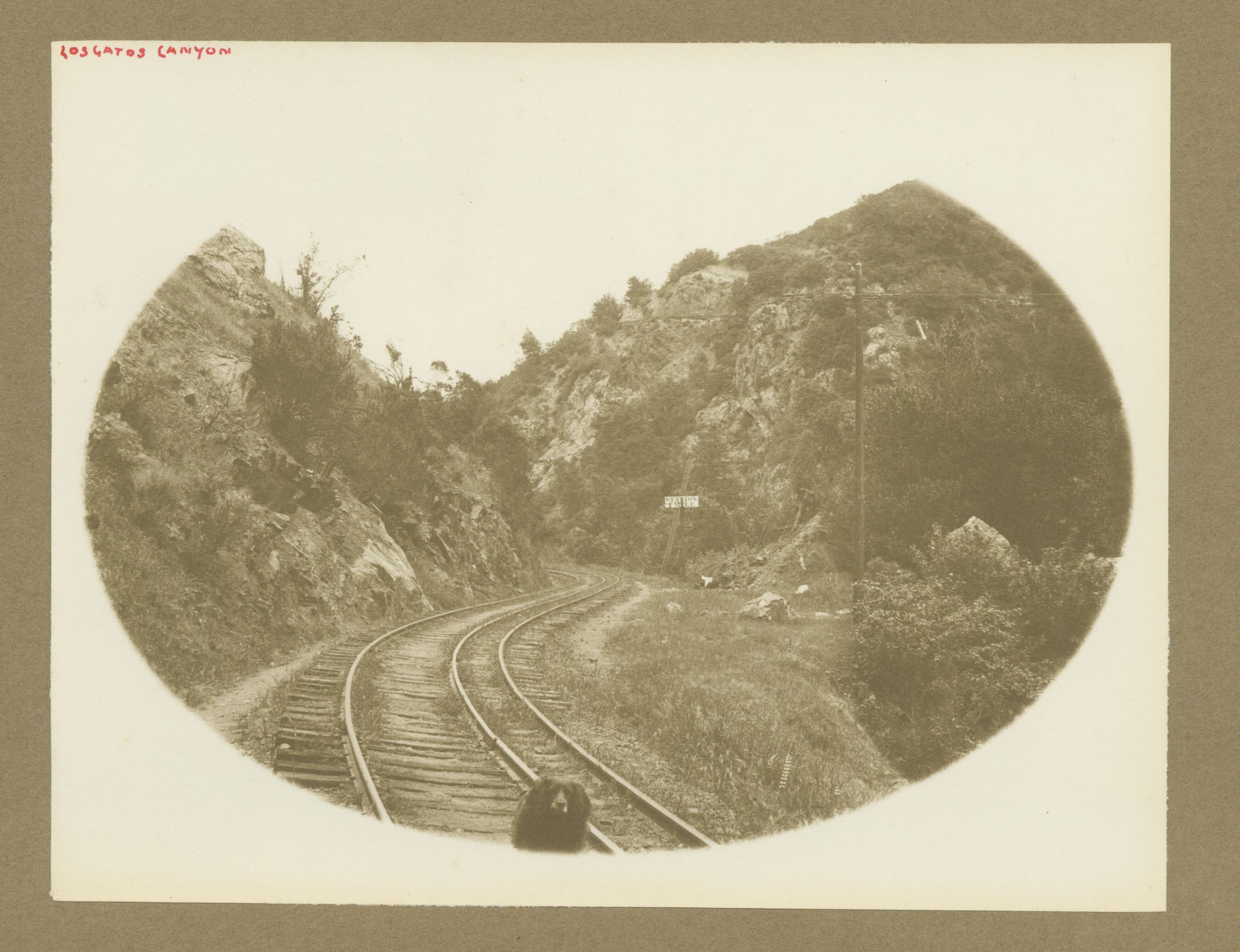 Wagner photo album photograph labeled: Los Gatos Canyon. Dog in photo could be Rags. WAG005Collection
