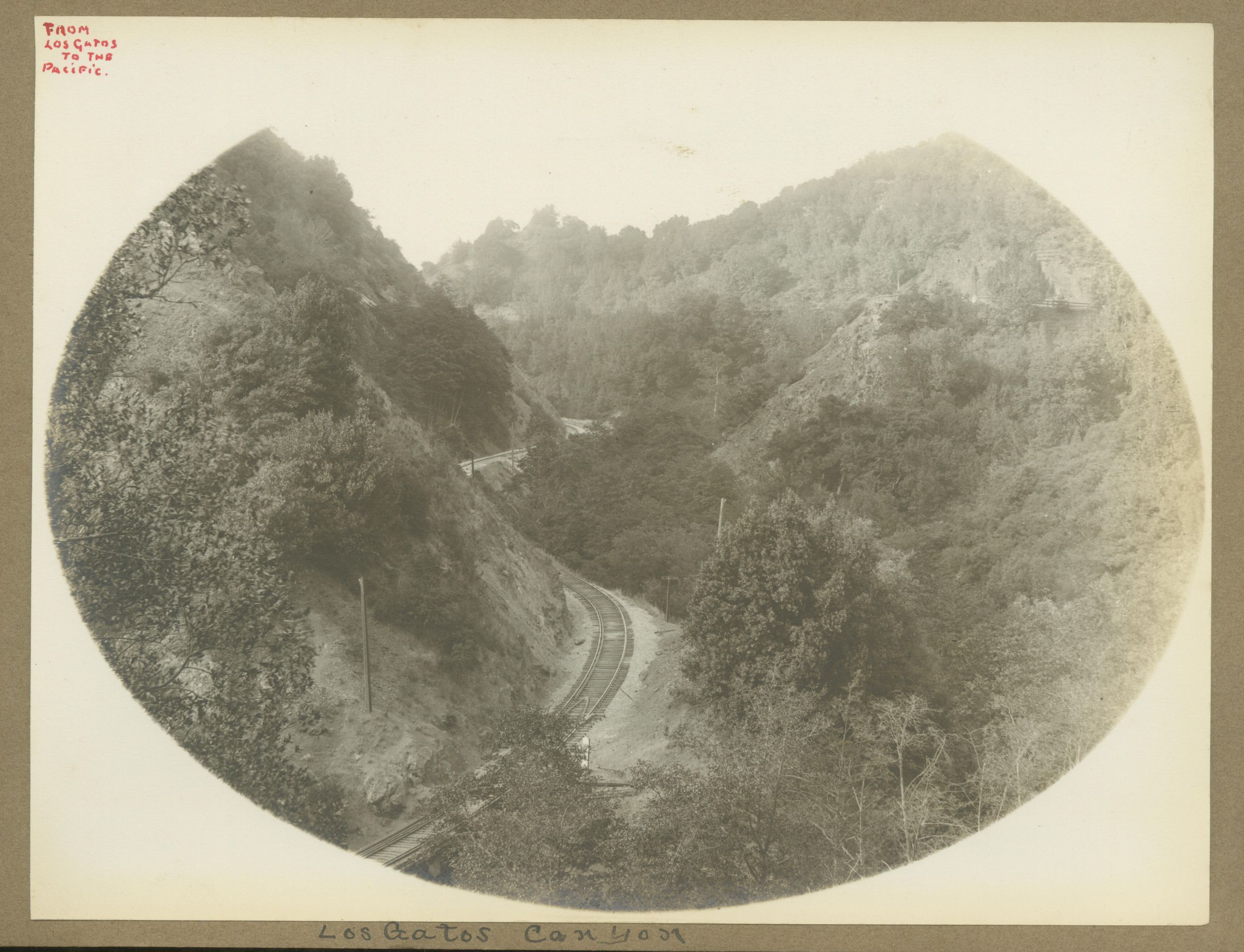Wagner photo album photograph labeled: From Los Gatos to the Pacific, Los Gatos Canyon. WAG012Collection