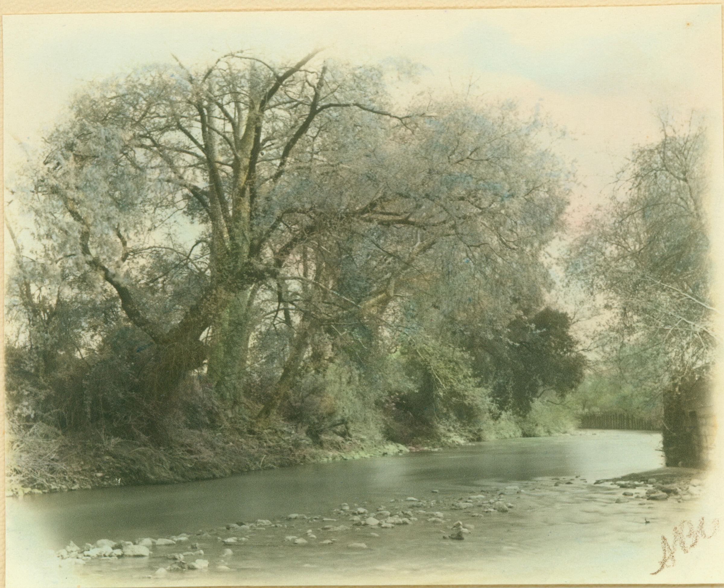 An early hand-tinted photograph, showing the creek in a bucolic state. LGC022Collection
