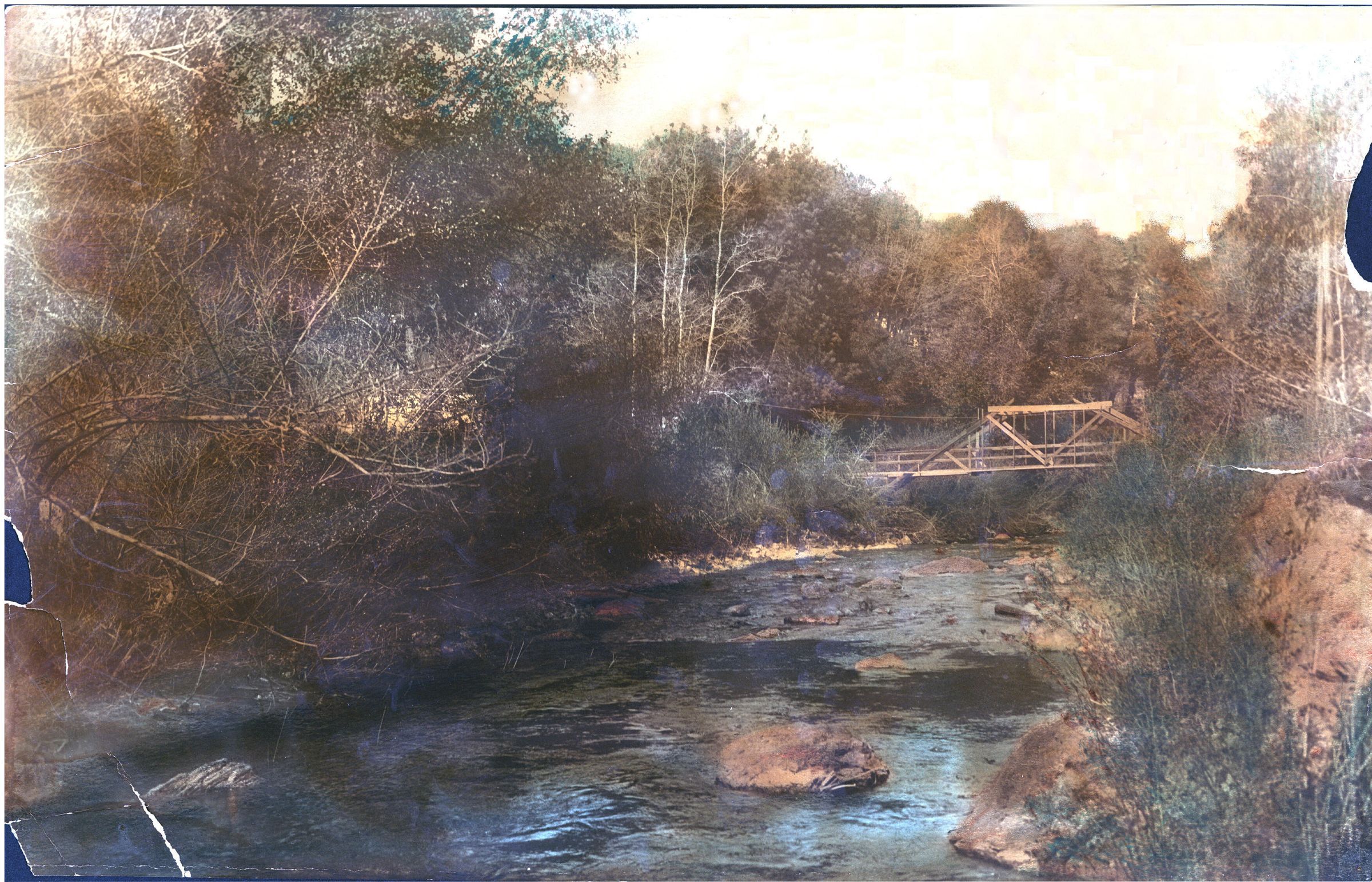 View is south of Los Gatos, where a footbridge spanned the creek. LGC004Collection