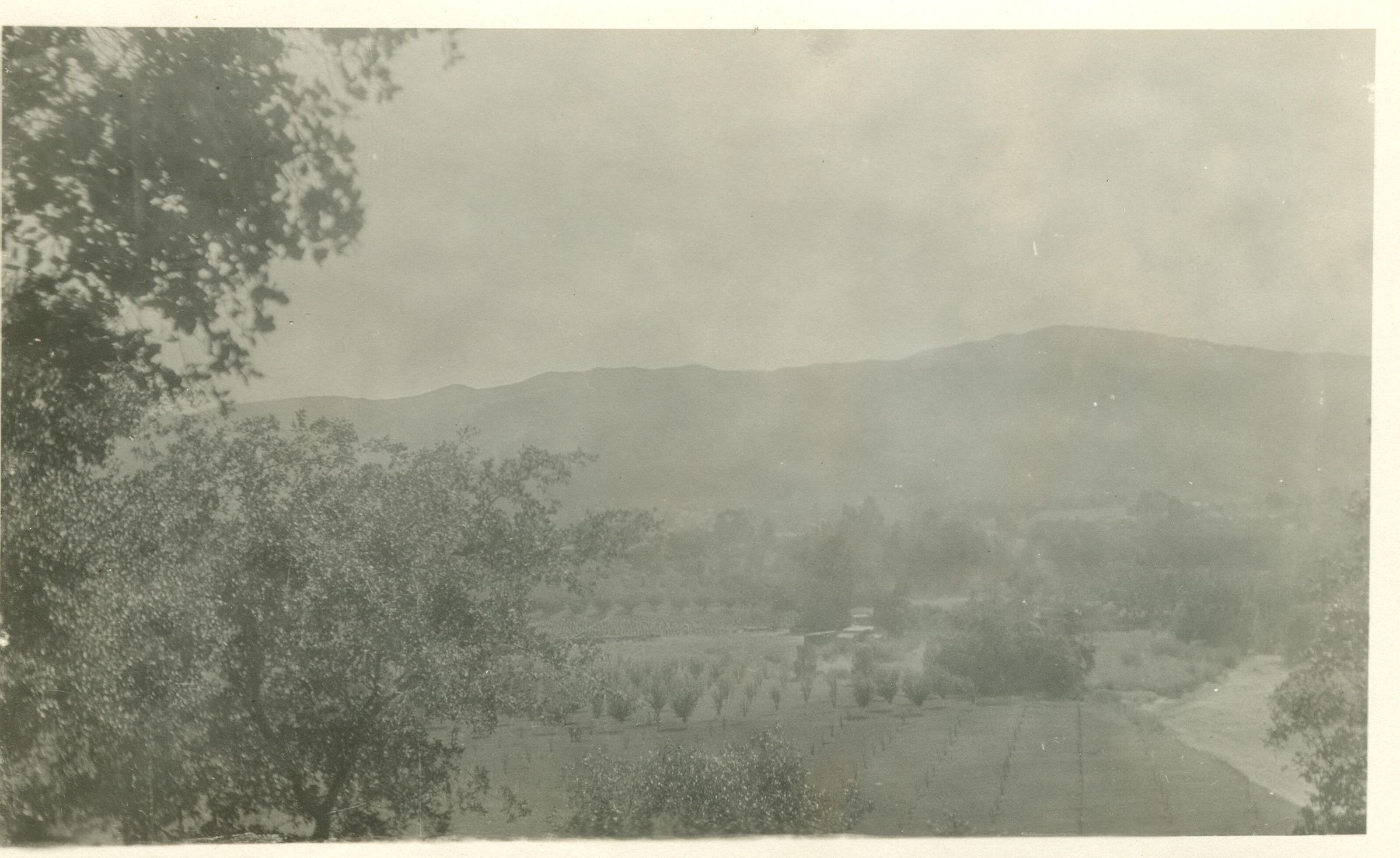 Los Gatos Creek, at right, from the rose garden at Placer Oaks Ranch before the construction of Highway 17. This area is now Vasona Park. BGF024Collection