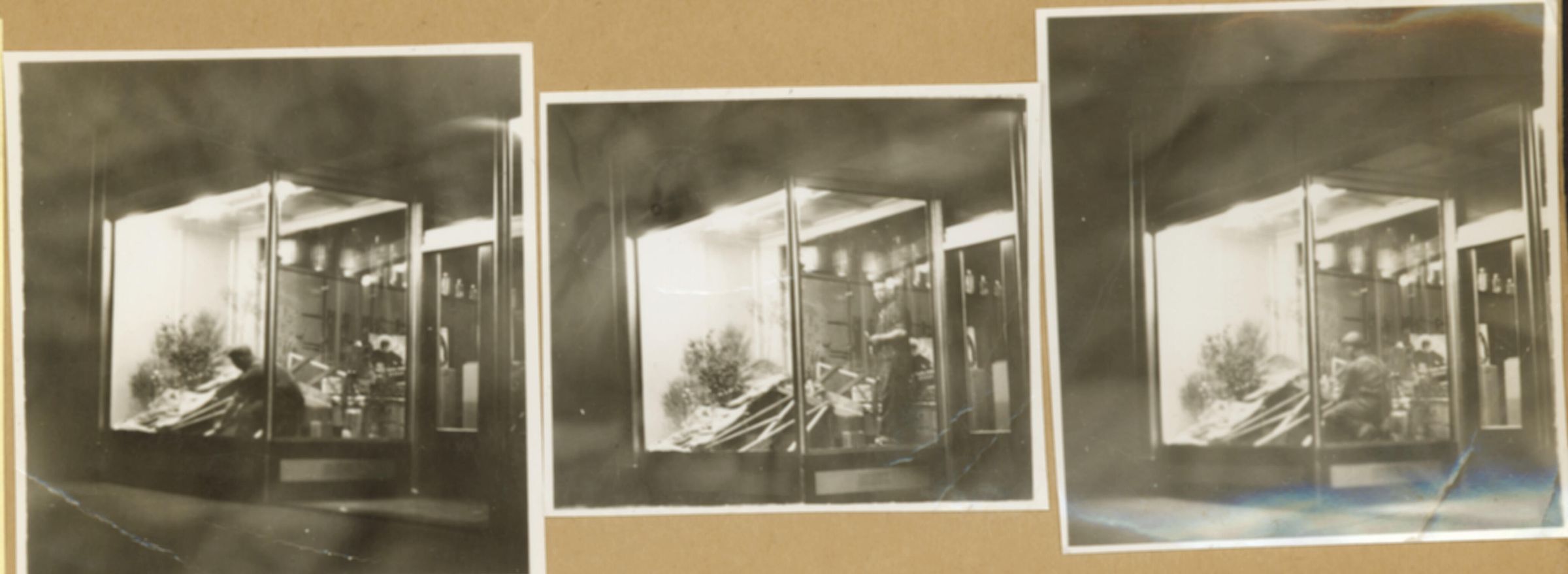 Mel Shore is shown working late into the night on a special store window display, circa 1938. SHU170abcCollection