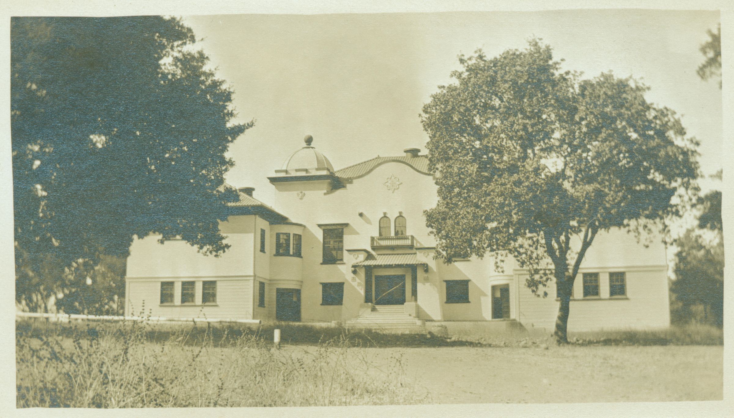 By 1906 the desire for a high school building separate from the grammar school, located on a different site, was expressed. A $30,000 bond was passed on January 17, 1907, for a new high school building, which opened in 1908. It stood at the crest of High School Court, and the land fronting on Main Street was purchased in 1911. The building showed California Mission influence and was located approximately where the high school library presently stands. When a new high school was built in 1925, the old building was retained and used for classrooms and industrial shops. Sections were torn down over the years, until none of this building remained by 1955. FAR013Collection