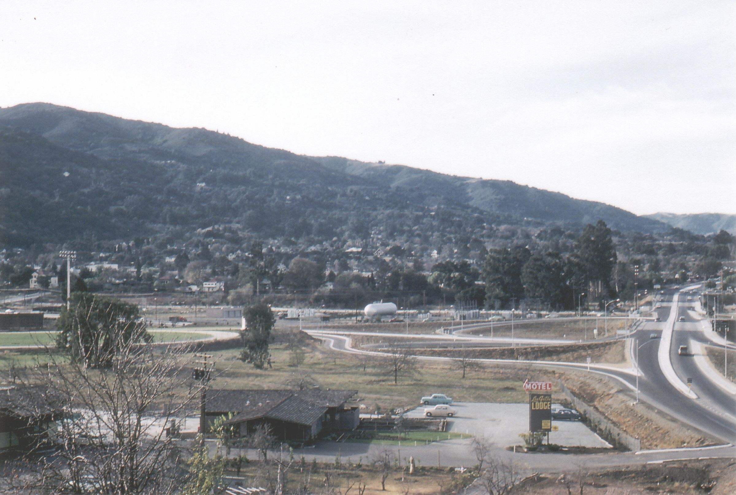 View from Bella Vista towards Saratoga Avenue and University Avenue, with Los Gatos Lodge in the lower left corner. EJ020Collection