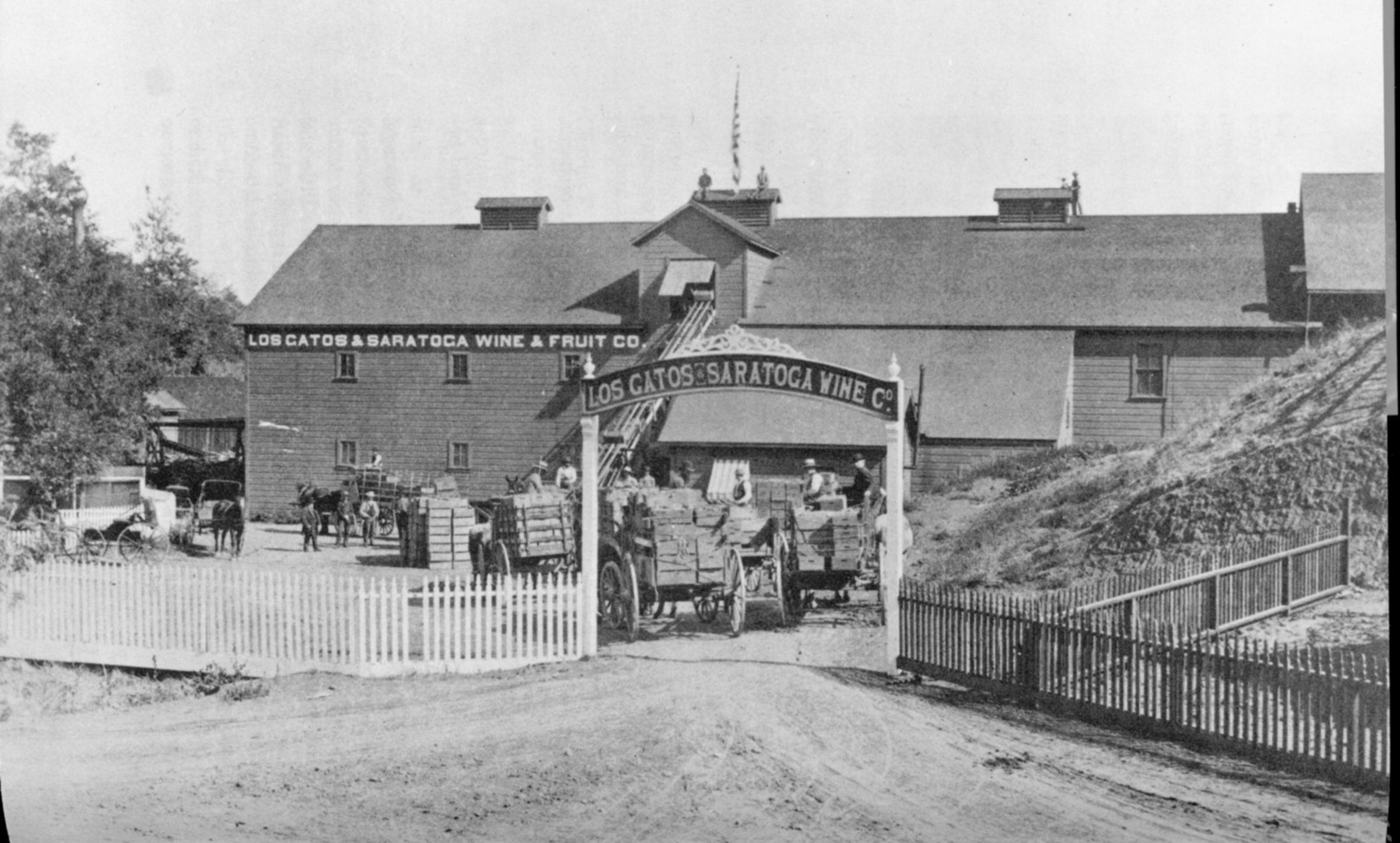 One of the wineries in the Los Gatos-Saratoga area. It was built by local growers in 1885 to facilitate the processing of grapes. Located at Austin Corners, near the intersection of Quito and Saratoga-Los Gatos roads, it was torn down in 1919 because of Prohibition. AG089Collection