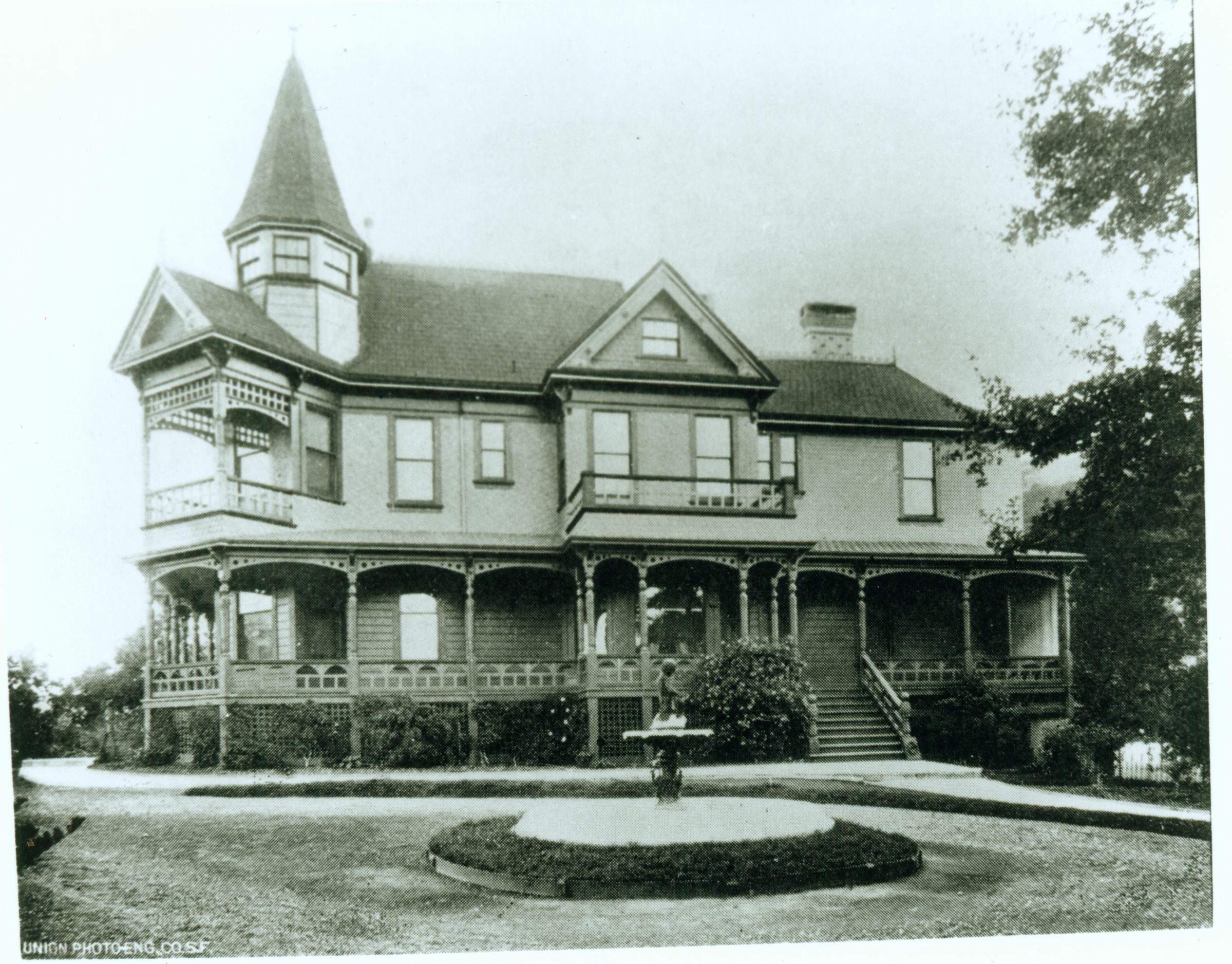 John W. Lyndon built his grand home overlooking Los Gatos in 1886 on the site now occupied by Los Gatos Meadows. The three-story Victorian was constructed of heart redwood and had a rambling porch, 6 fireplaces, two grand staircases, an elevator, and 24 rooms. The house was painted a deep orange-red on the bottom and a soft yellow-green above. It was dismantled in 1969. FAR015Collection