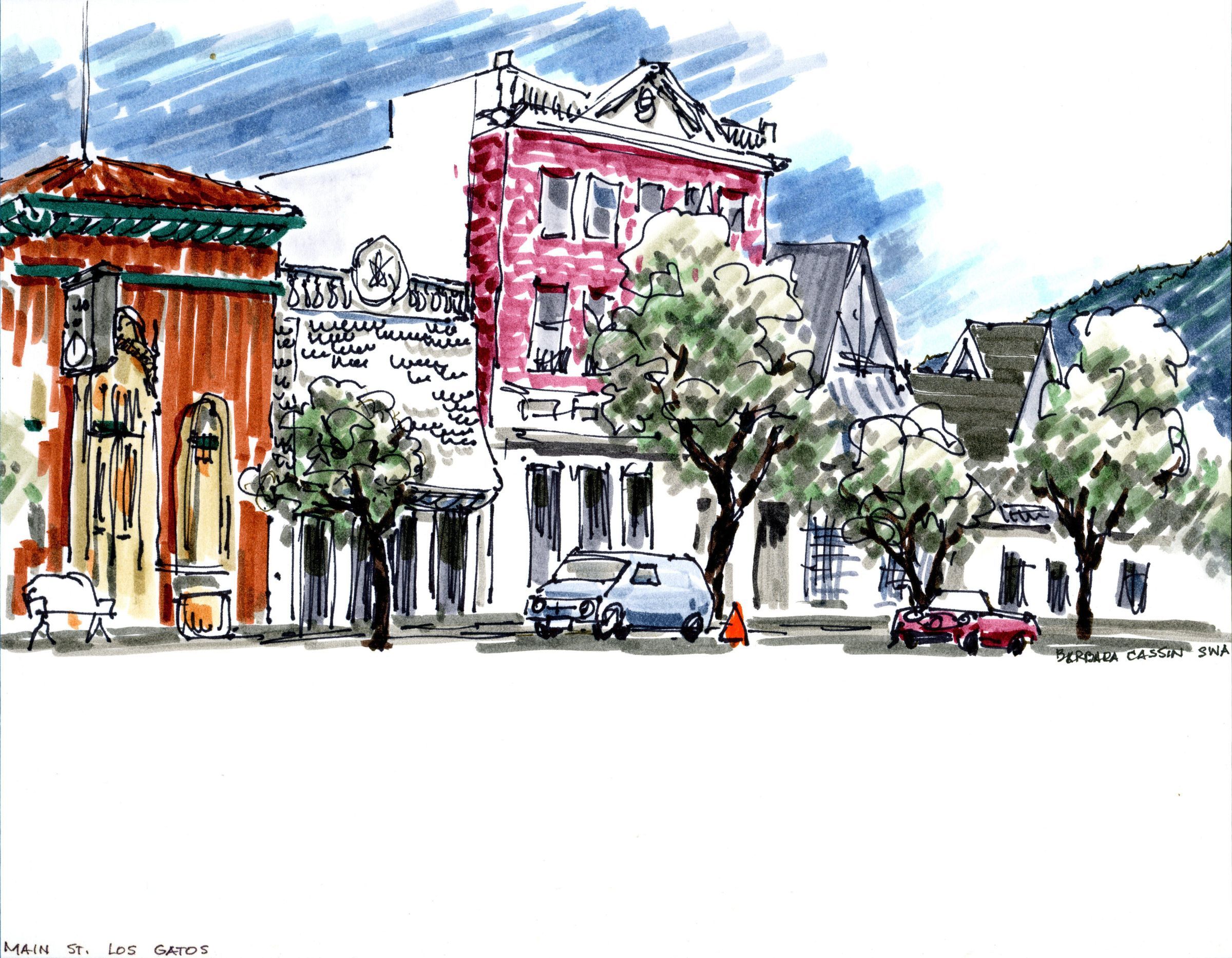 The building at the left was the First National Bank of Los Gatos and the taller Crider Department store to the right.Type of Painting