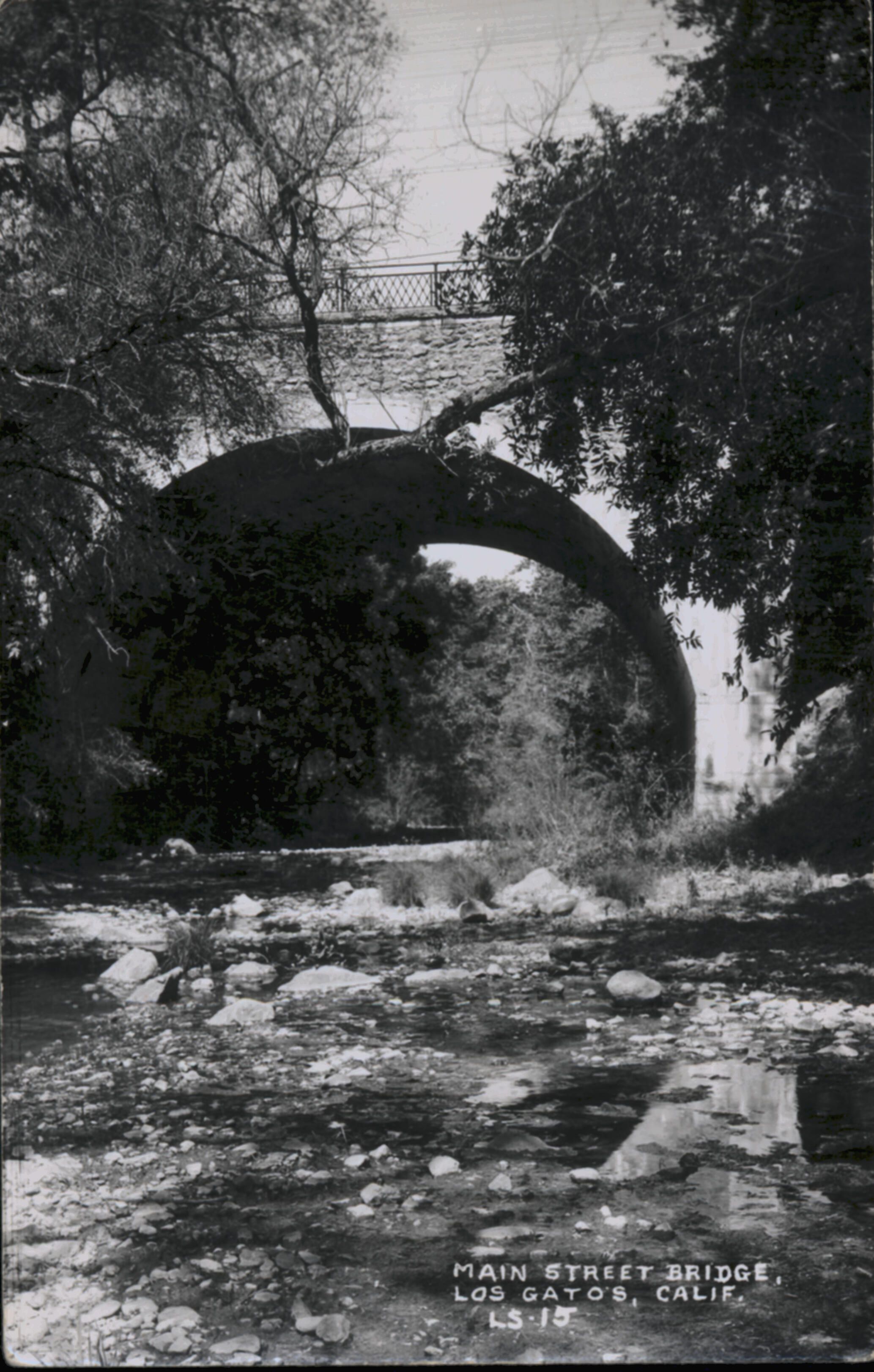 Concrete and rubble stone bridge which stood from 1906 to 1954. It withstood the 1906 earthquake shortly after completion and had to be demolished by dynamite when Highway 17 was built. BA056Subject