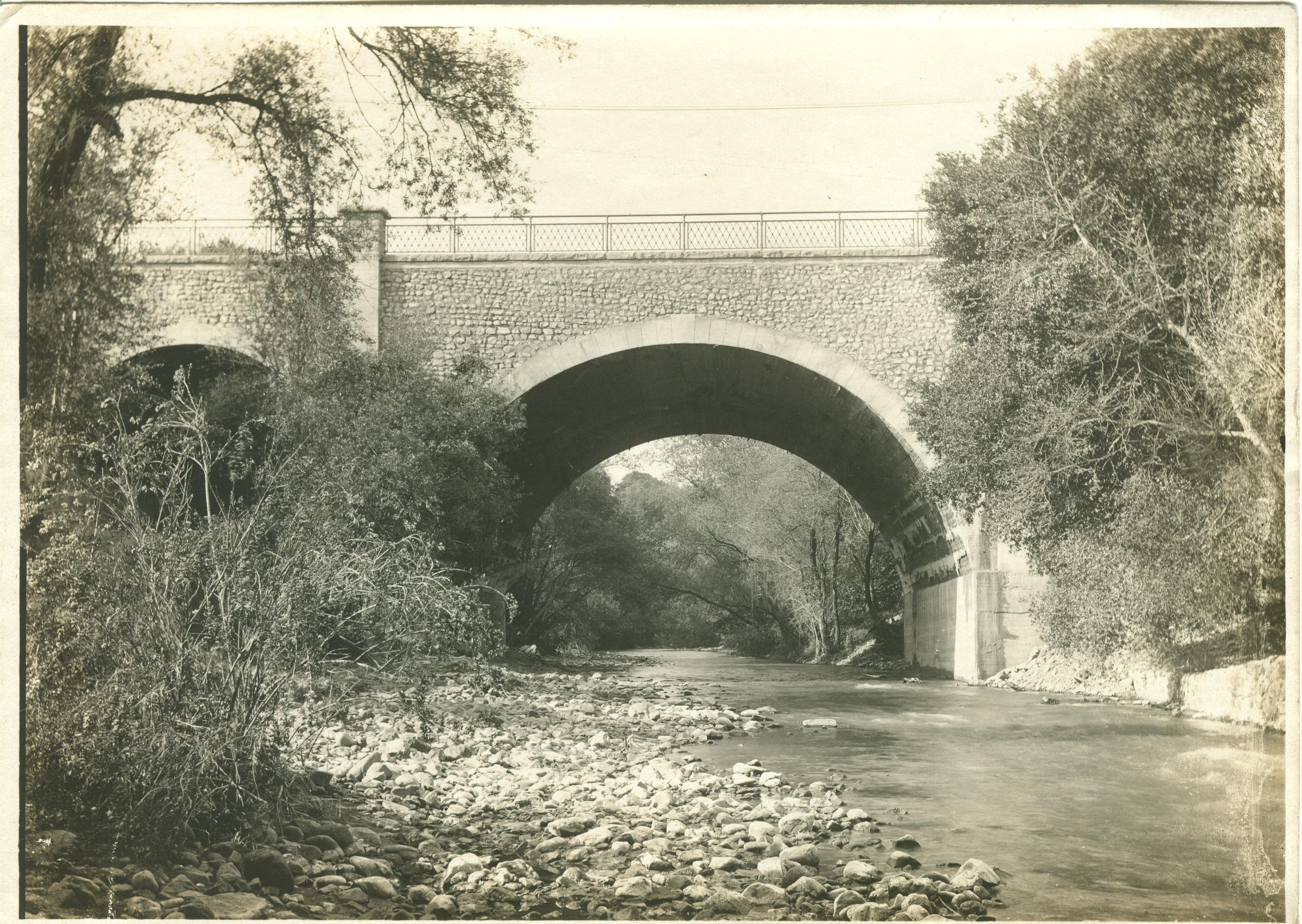 The Main Street Bridge, constructed of concrete and rubble stone, was dedicated in 1906. It stood until 1954 when it was removed to make way for Highway 17. TOB025Collection