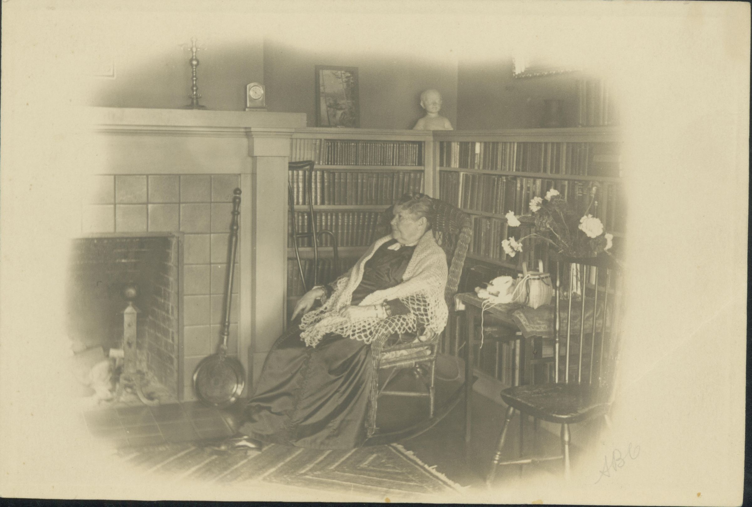 Maria Palmer Balch, known as "Grossie," was the mother of Dean Balch. Here she is seen in the Case house, part of the Balch-Case compound on Massol Ave. in Los Gatos. BBC038Collection