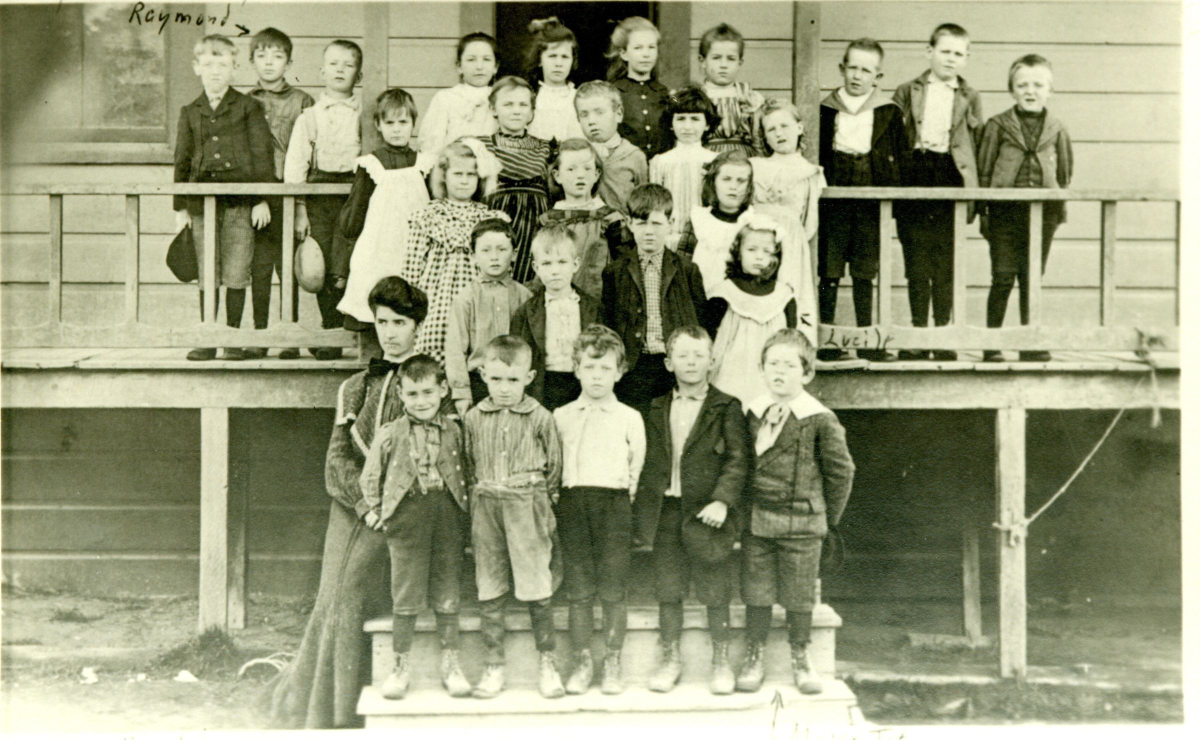 The Macabee children attended school on the street where they grew up. This class picture is of the first grade of the Market St. School in 1905-06. Miss Johnson was the teacher. Raymond Macabee (top row, second from left) worked all of his life making gropher traps. His sister Lucile (second row, far right) was a music teacher and pianist who also spent some time in the trap business. MAC026Collection