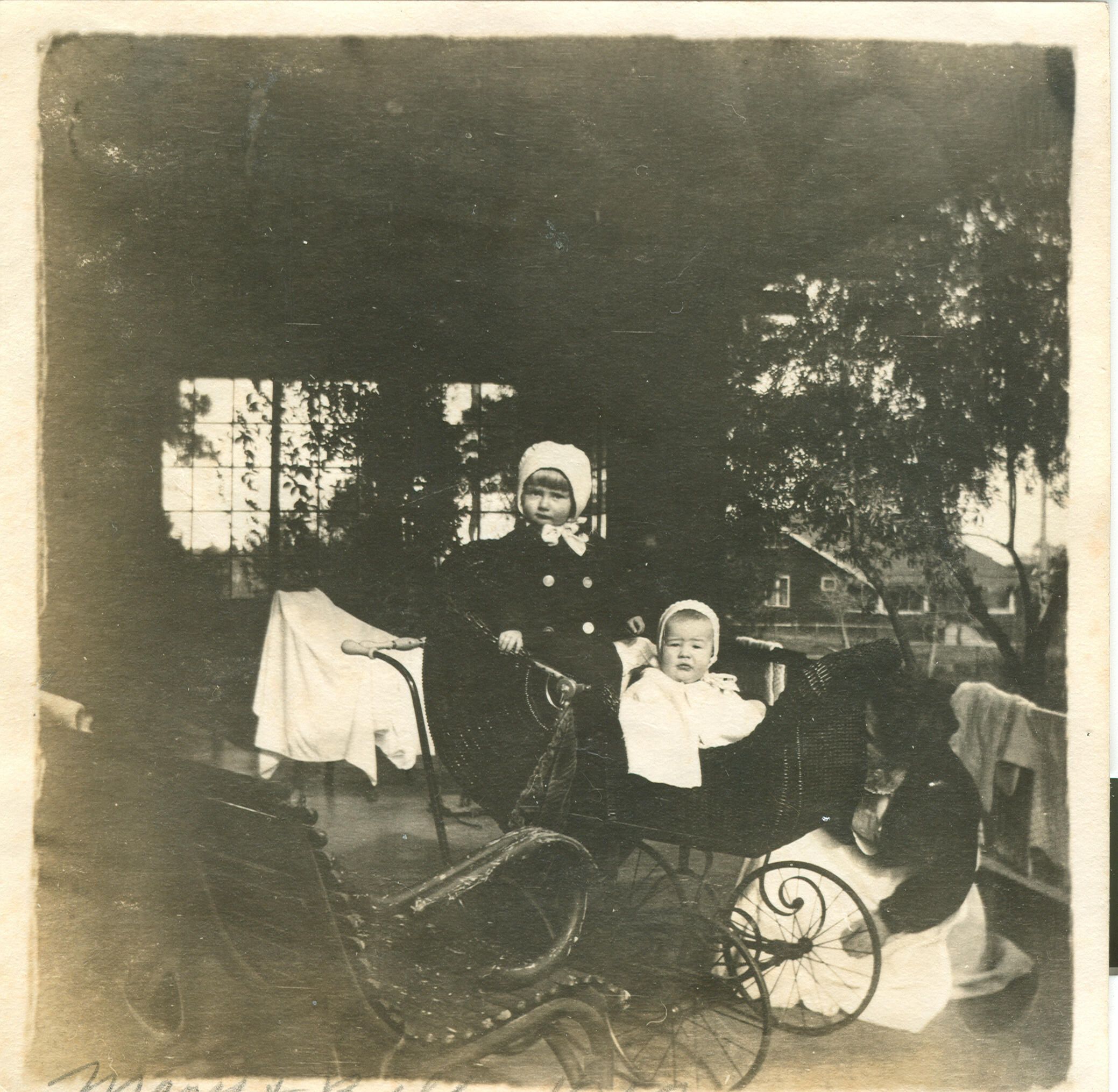 Mary and Bill Balch are shown here on the front porch of their home in about 1911. Mary's godfather was Francis McCullough, a Los Gatos land developer. S.D. Balch and J.A Case bought land from him at Massol and Saratoga Avenue in order to build their homes, which were adjacent to each other, separated by a fountain and gardens. BAL017Collection