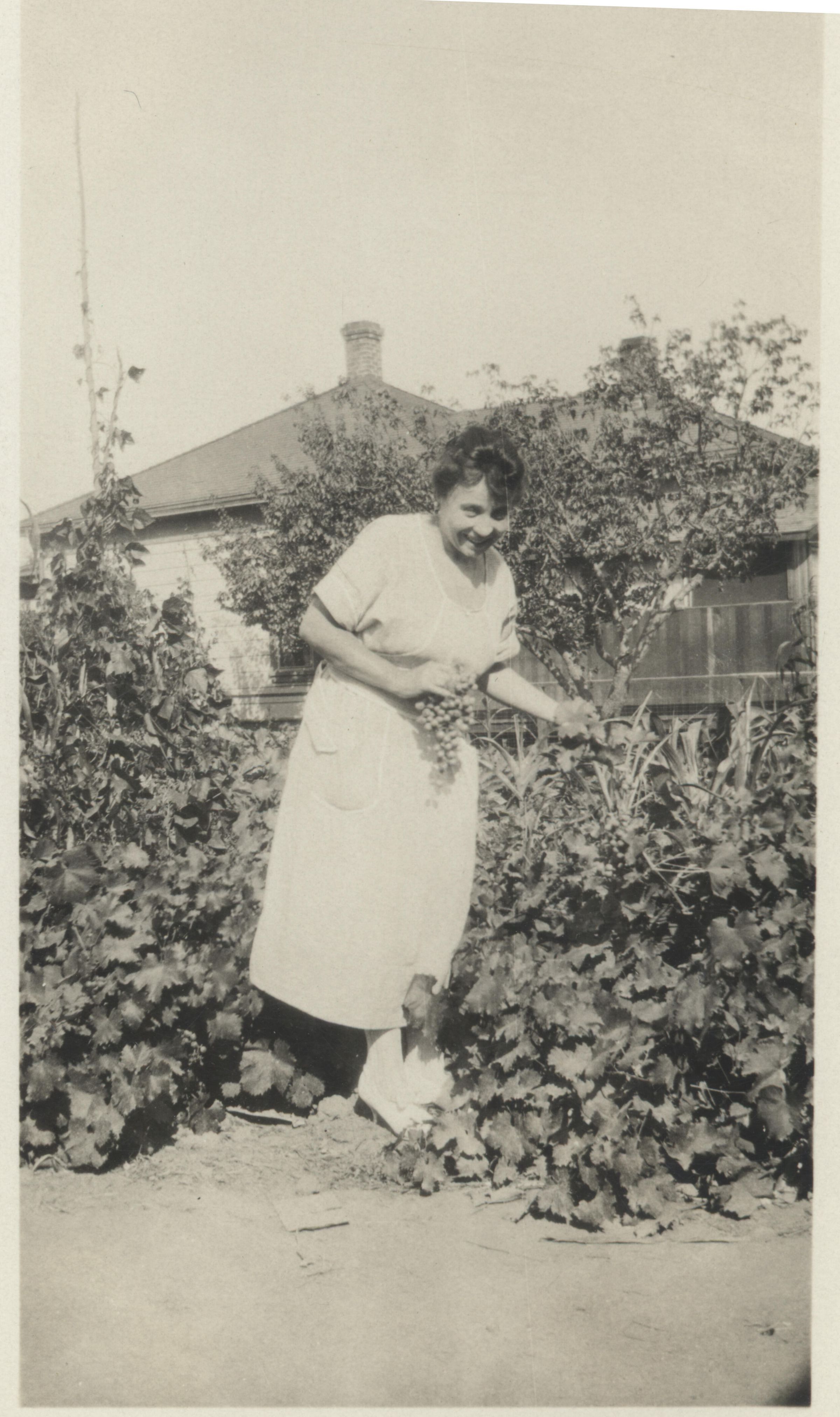 Mary is shown picking grapes. The exact location is unknown, but it's probably in Los Gatos. MAR010Collection
