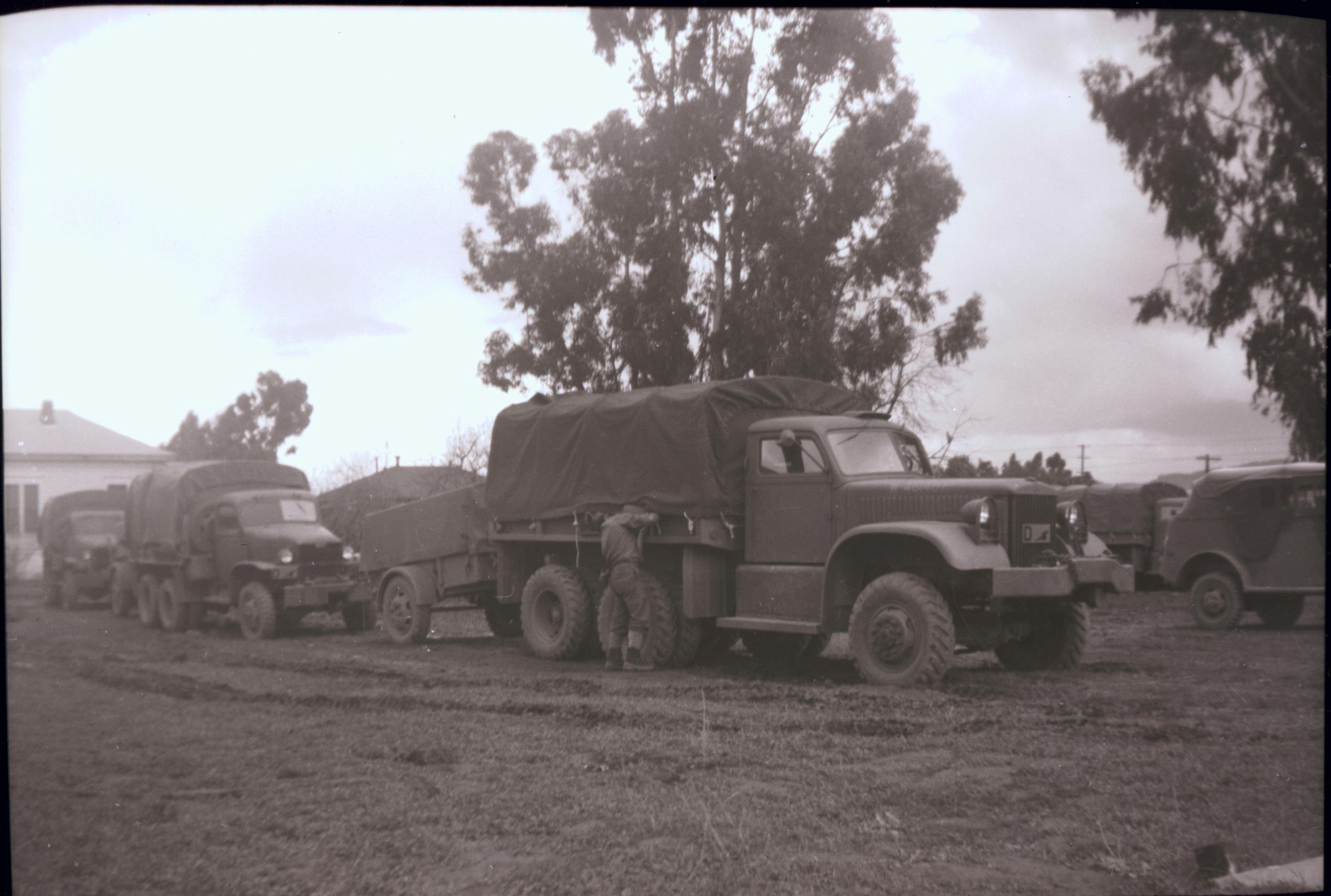 During World War II the Army parked trucks on the large vacant lot at the corner of N. Santa Cruz Avenue and Royce. The men were stationed in the large building on the Peerless Stage property. Soldiers were often invited home for dinner by Los Gatos families. SHU129Collection