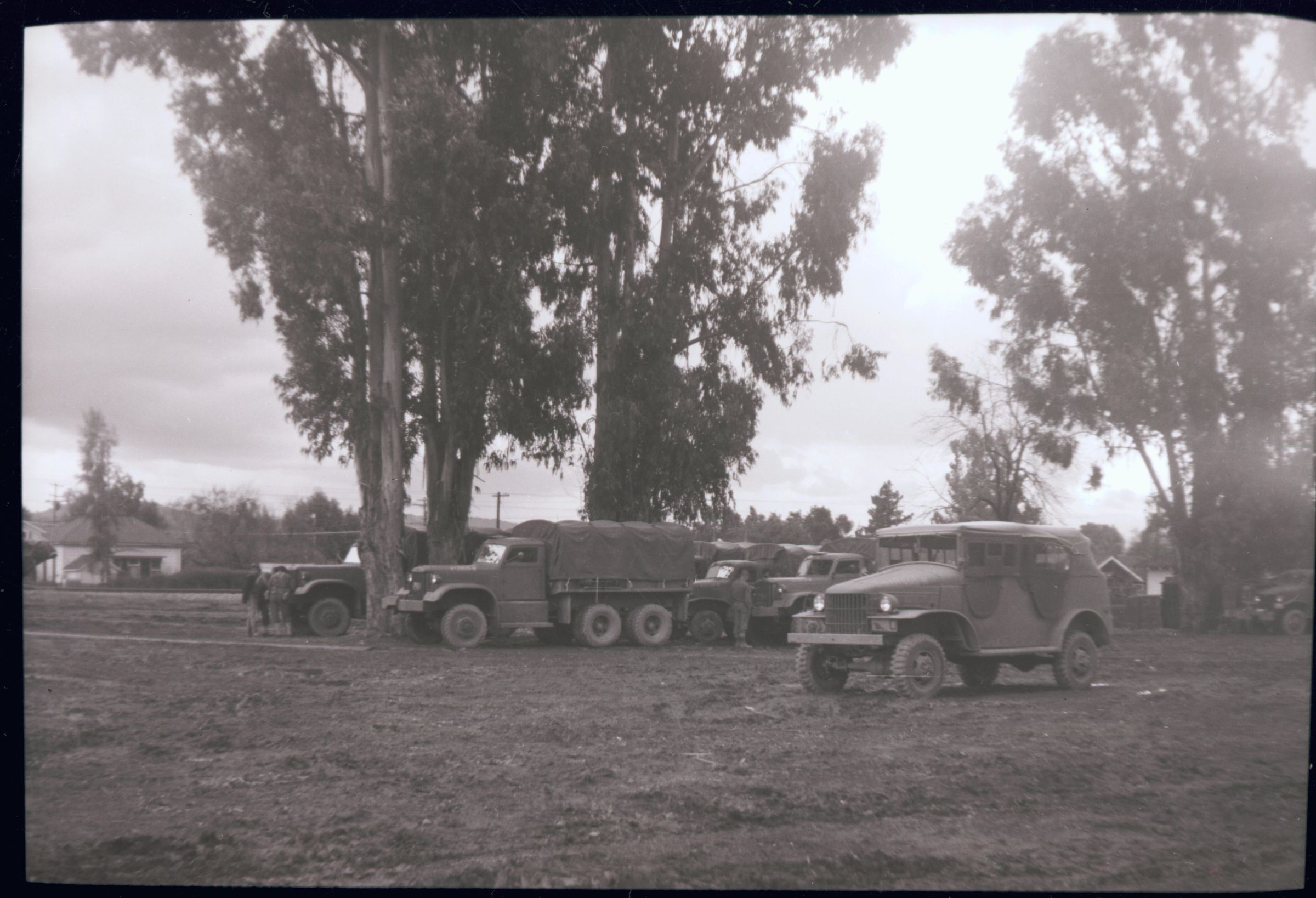 During World War II the Army parked trucks on the large vacant lot at the corner of N. Santa Cruz Avenue and Royce. The men were stationed in the large building on the Peerless Stage property. Soldiers were often invited home for dinner by Los Gatos families. SHU200Collection