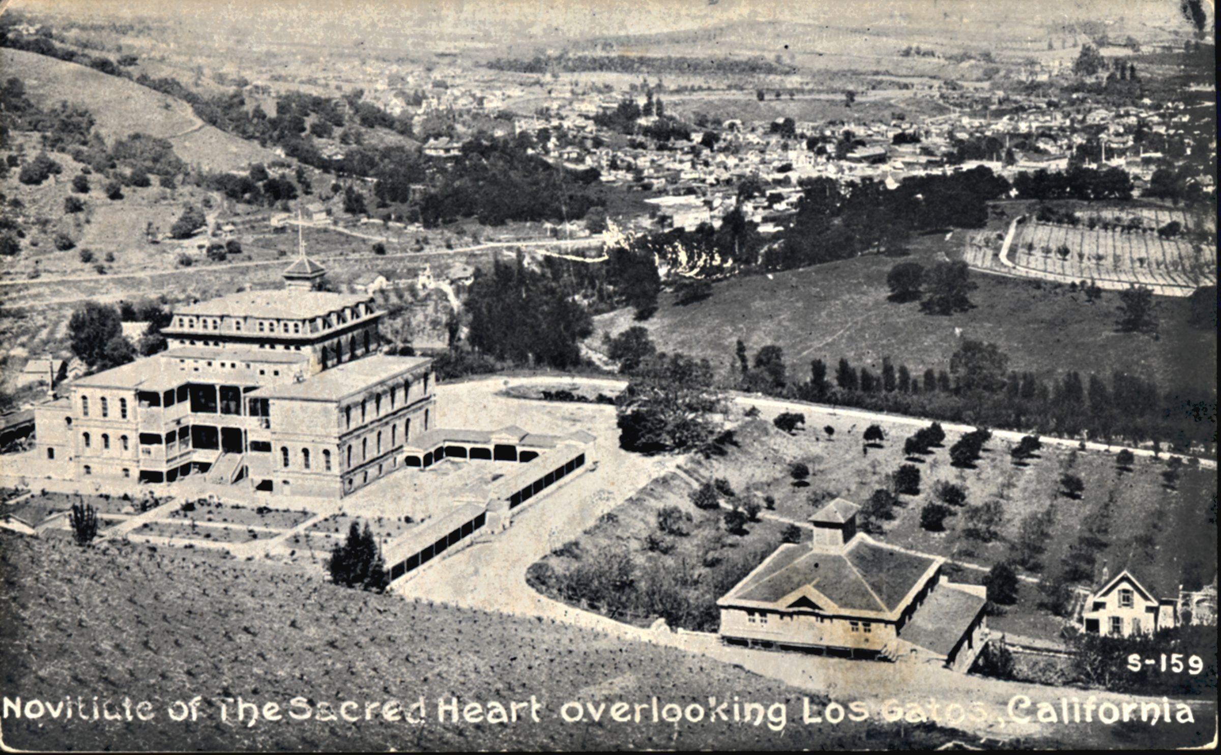 A view from the hillside overlooking the Novitiate with the town of Los Gatos spread out below it. The winery is located in the bottom right of the photo. BA048Subject