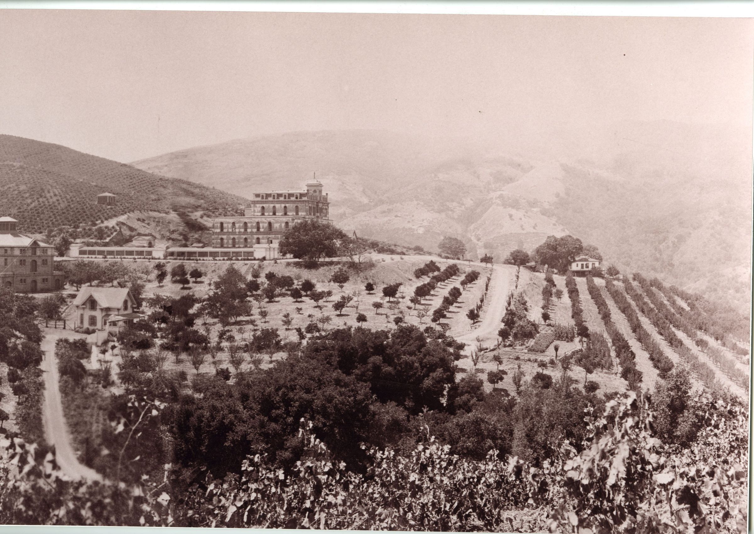 Sacred Heart Novitiate, long view. Shows cloister walk. Wilcox house is to right. NVC000Collection