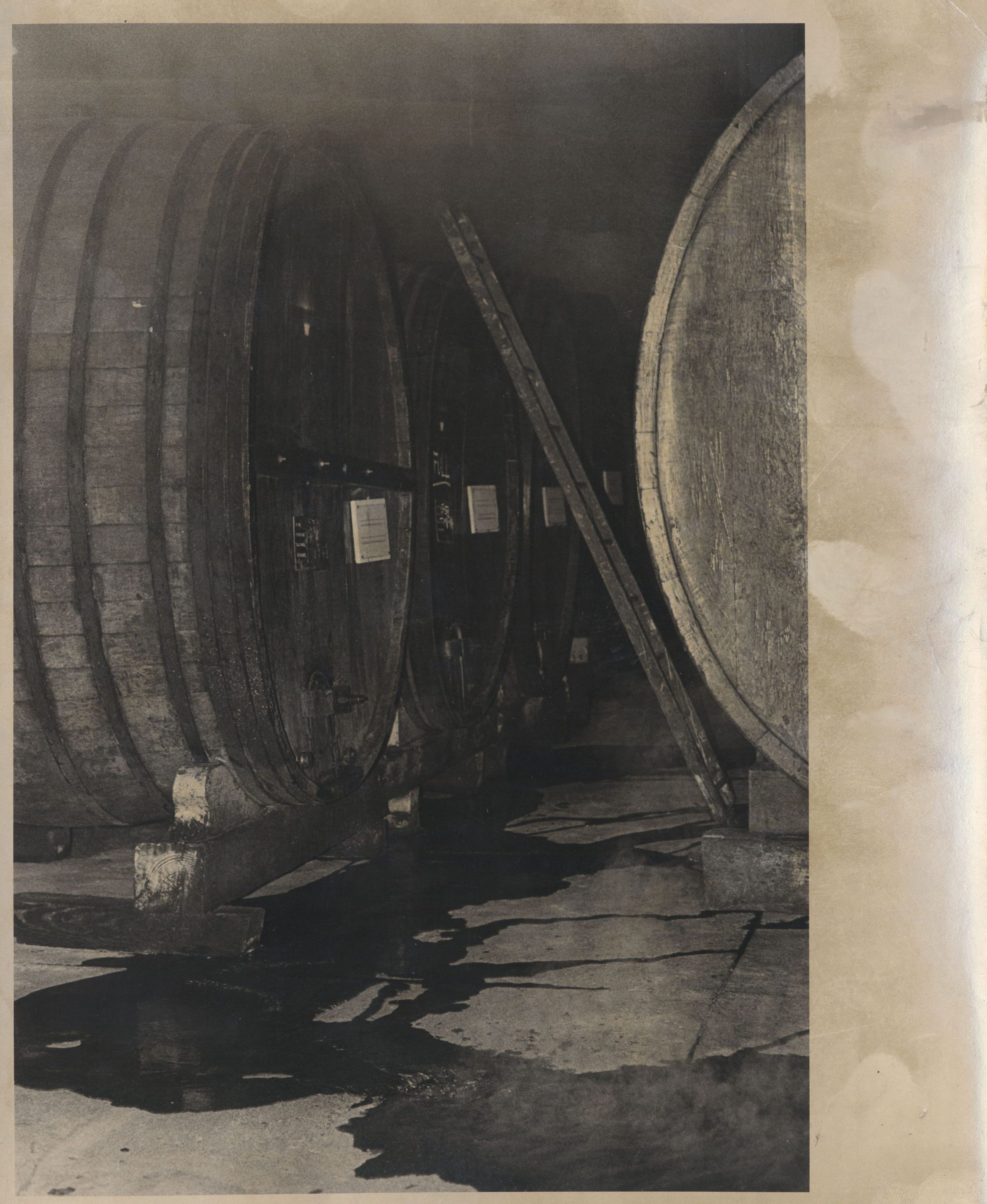 Some varieties of wine were aged in large oak barrels. BA205aCollection