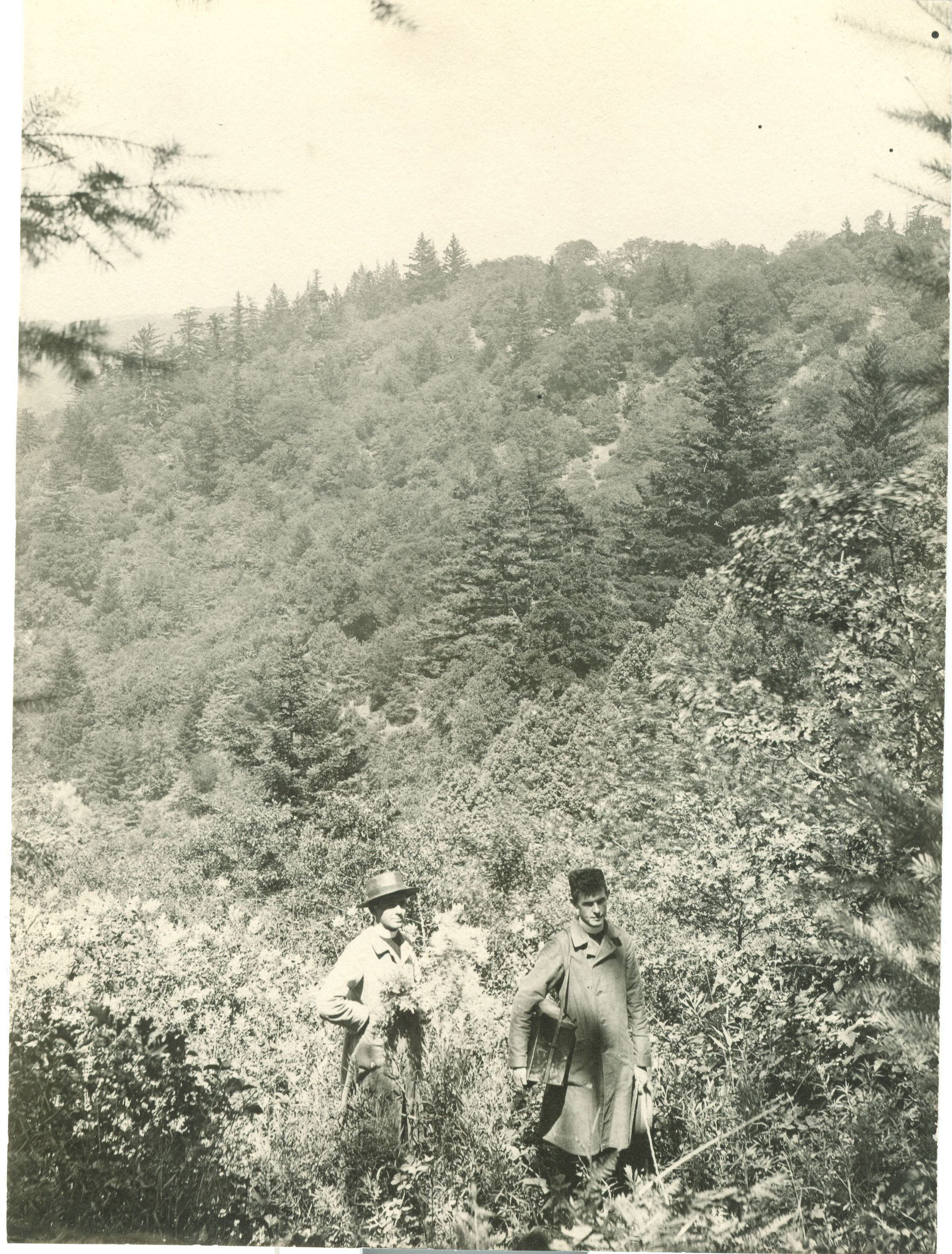 View off Bear Creek Road - exploring "Earthquake Canyon" in 1912 where earthquake fault continued once it left Alma. NVC047Collection