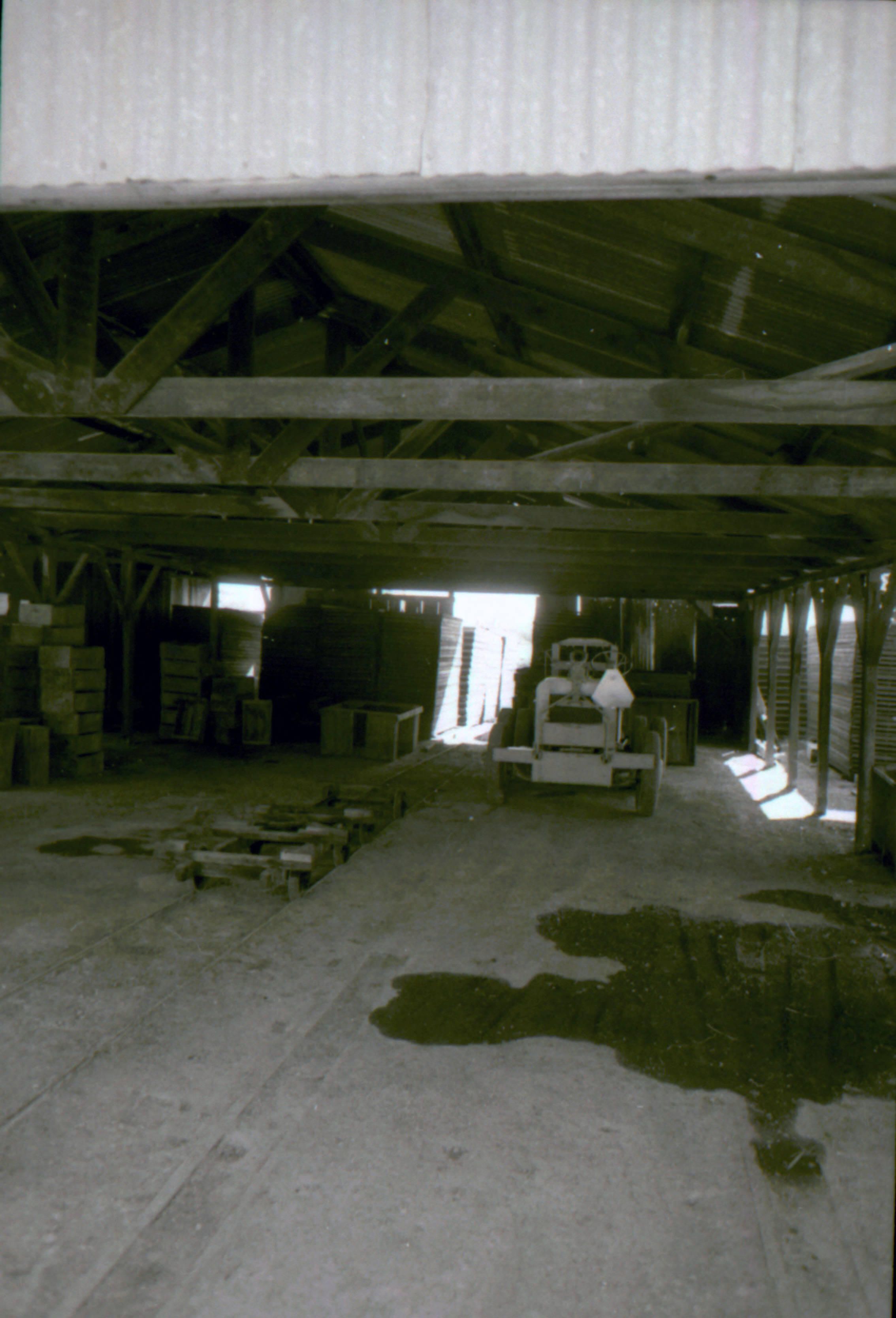 Rail carts held drying trays and were moved on the rail to the sulfur shed and to the drying yard. The Orchard Fork Lift is seen to the right in this picture inside the drying shed on Short Rd. between Shannon Rd. and Blossom Hill Rd. AG101Collection