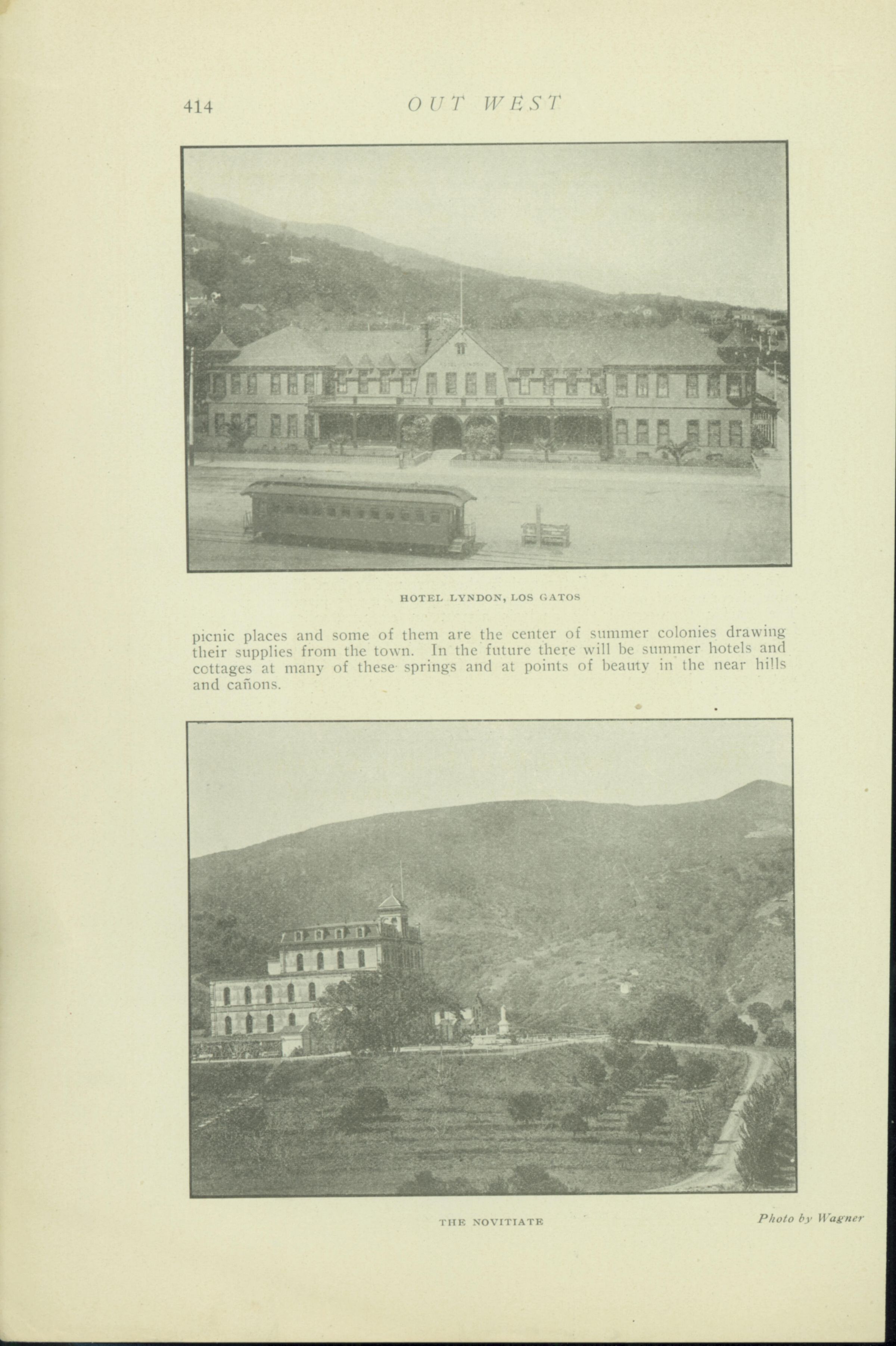 Photos of the Hotel Lyndon with an Interurban Railway car in front, and a photo of the Novitiate. ROS098Subject