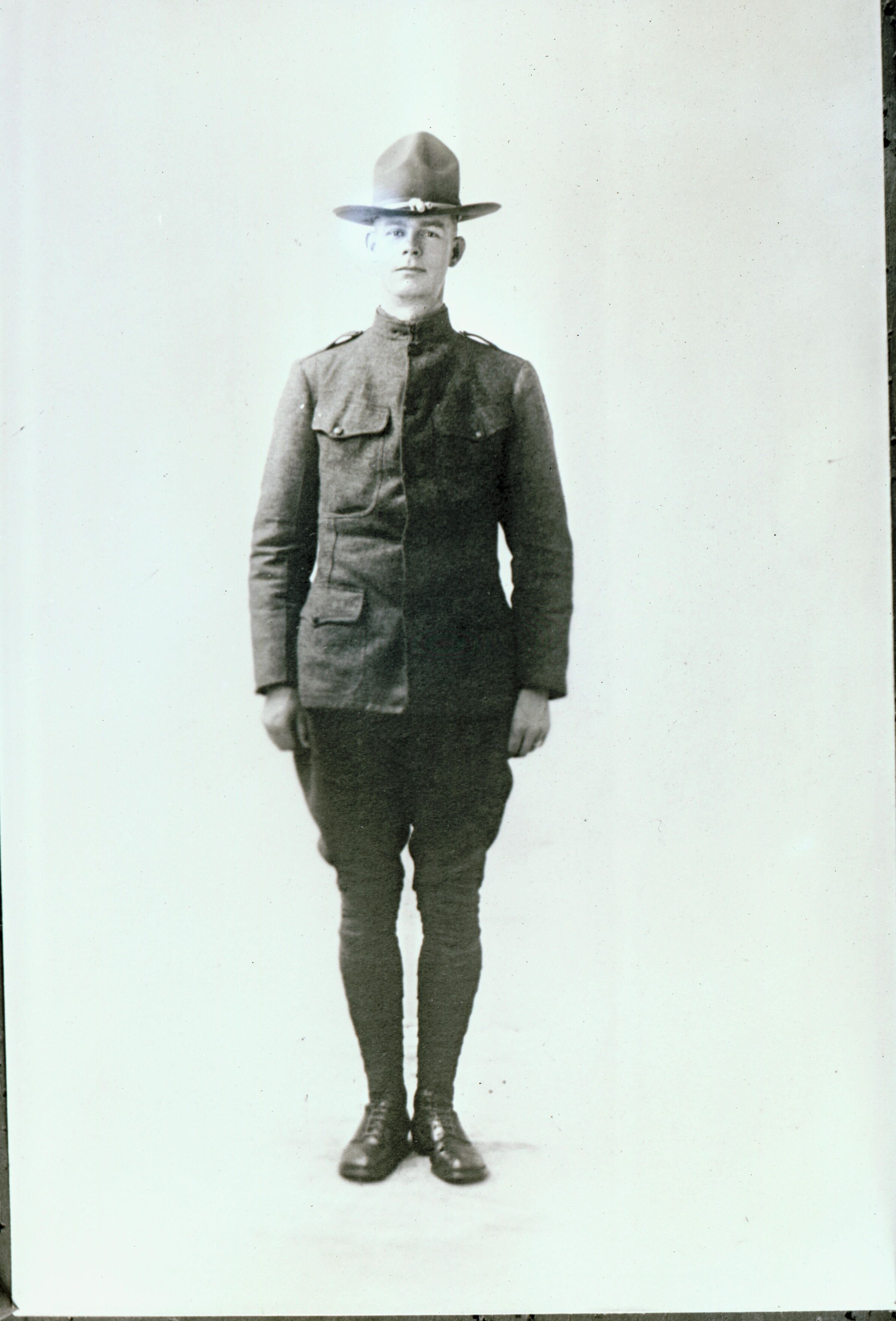 Paul Edward Curtis in WWI as a sergeant of a machine gun group. He served in France and Germany with the U. S. Army. His draft registration card was completed on June 5, 1917 and signed by George A. Green. At that time Curtis was single and employed as an assistant cashier with the Bank of Los Gatos. His home address was listed as 159 Wilder Avenue in Los Gatos. He was described as tall and slender with brown hair and brown eyes. CUR015Collection