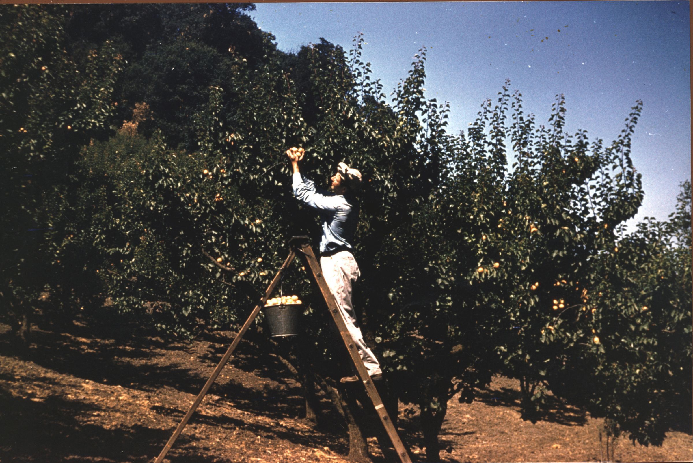 Lester Fink picking apricots in his orchard off Shannon Rd. FIN016Collection
