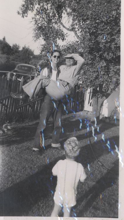 Walter Phillips standing in the background to the left, carrying an older man. LAW020Collection