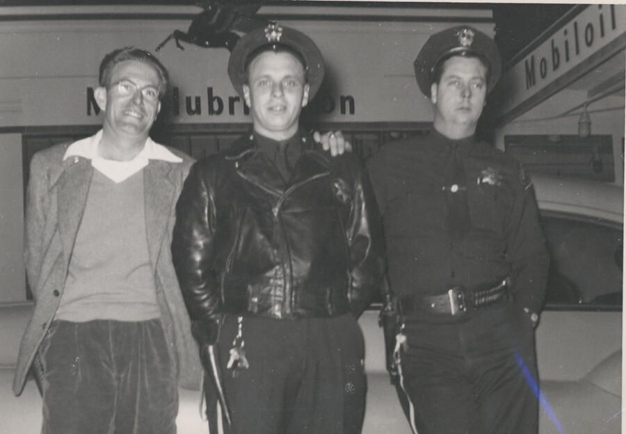 Members of the Los Gatos Police Department, including Walt Phillips, at right, at the local Mobiloil station. LAW016Collection