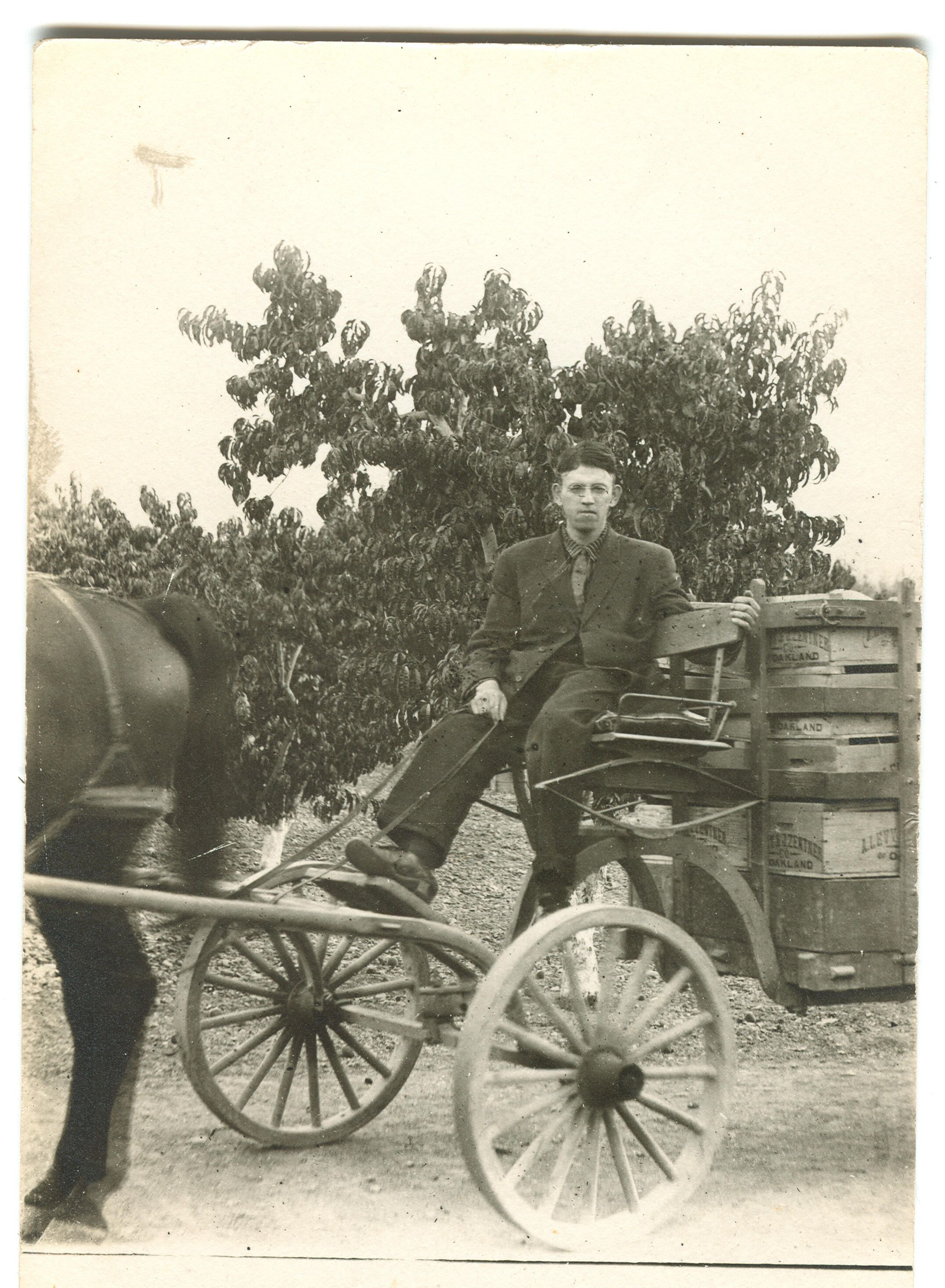 Robert Scott (1893-1918) was raised on his parents' 30-acre peach ranch on National Avenue, neighboring the Cilker ranch. The influenza pandemic of 1918 - 1919, a global disaster, killed an estimated 675,000 Americans, including 25-year-old Robert. The flu was most deadly for people between the ages of 20 and 40. FIN042Collection