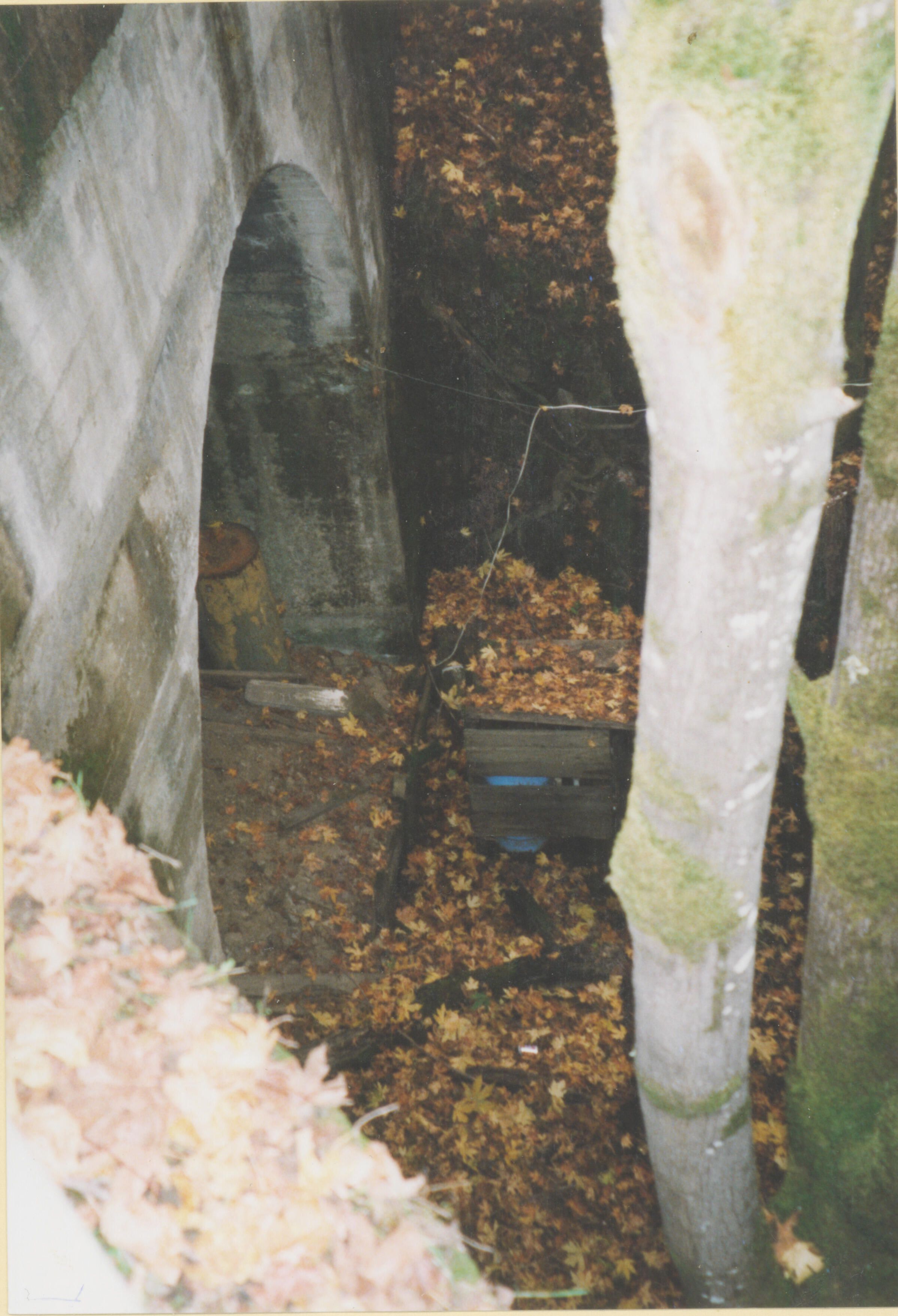A view looking down at the south portal of the Glenwood-Laurel Tunnel on what used to be the right-of-way of the South Pacific Coast R.R. and later the Southern Pacific R.R. Coast and Southern Pacific Railroads right-of-way. LEI065Collection