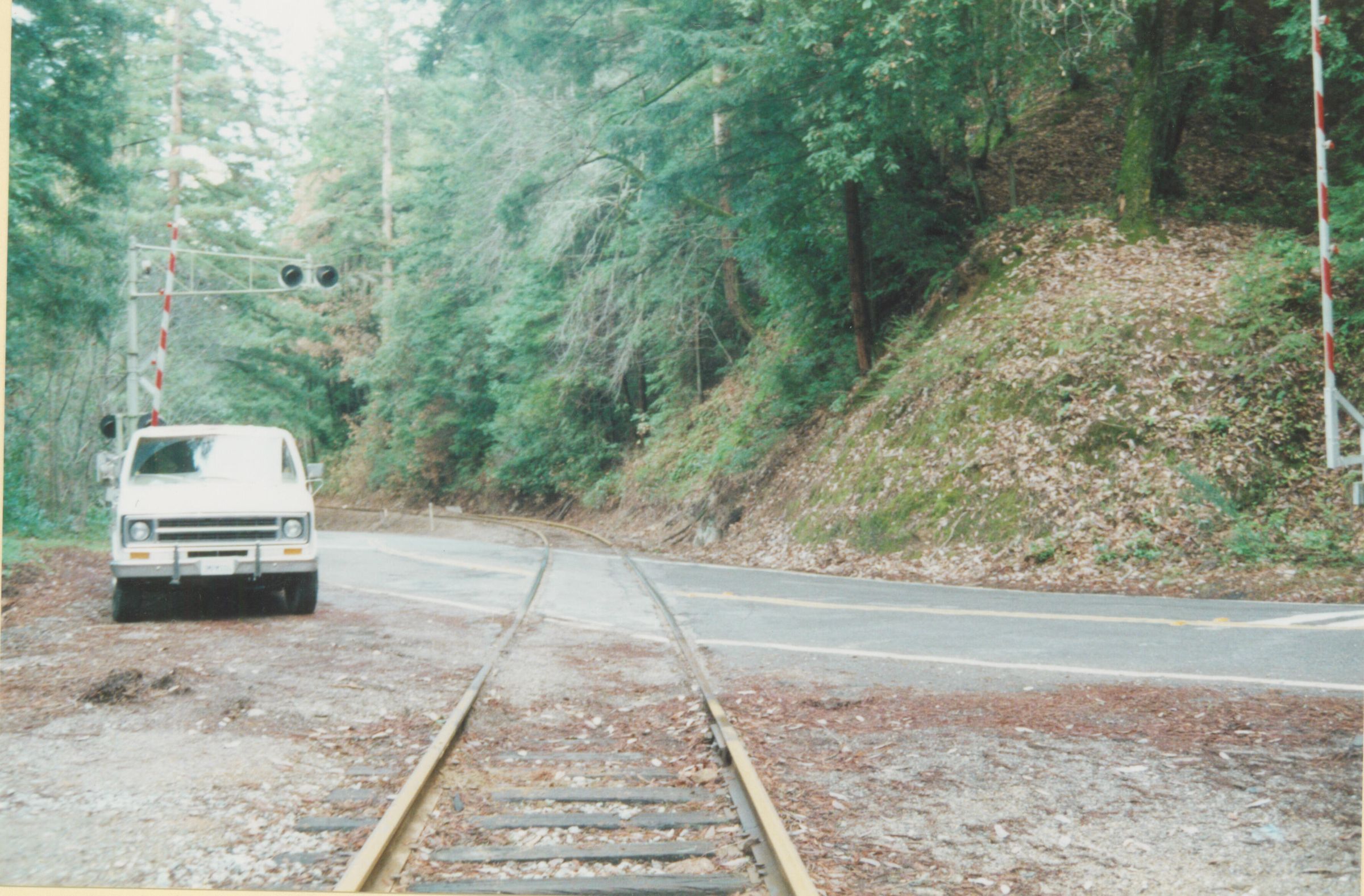 Looking south down the now active right-of-way of the original S.P.C.R.R. and later the S. P. R. R. crossing at Graham Hill Road. LEI080Collection